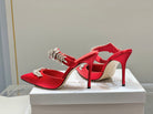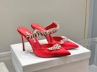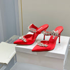 Manolo Mules Crystal Red Silk Satin 219379