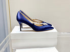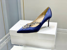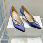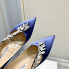 Manolo Wheat Ear Rhinestone High Heels Pumps Navy Blue Silk Fabric 327449