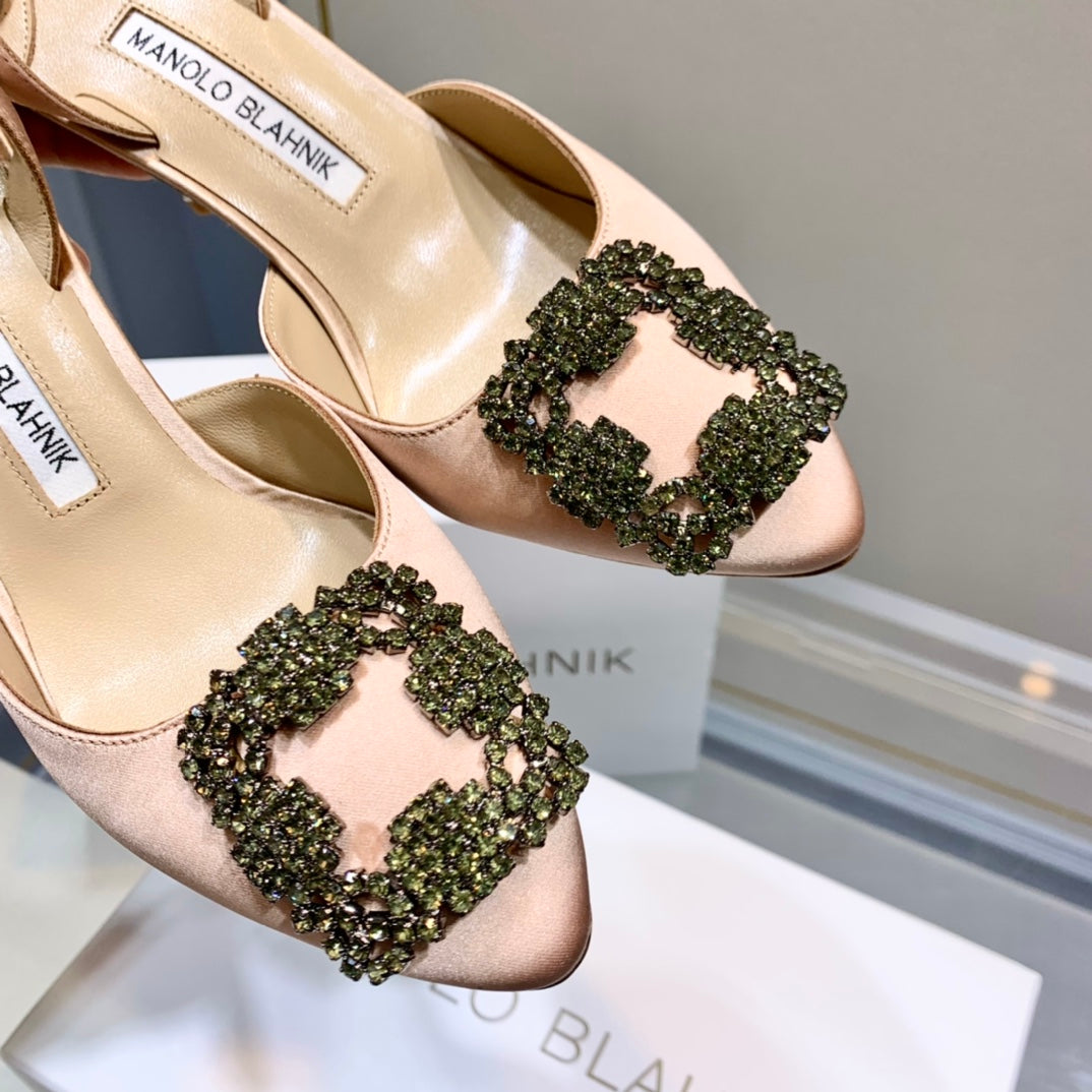 Manolo Diamond Buckle Pumps Beige Silk 327500
