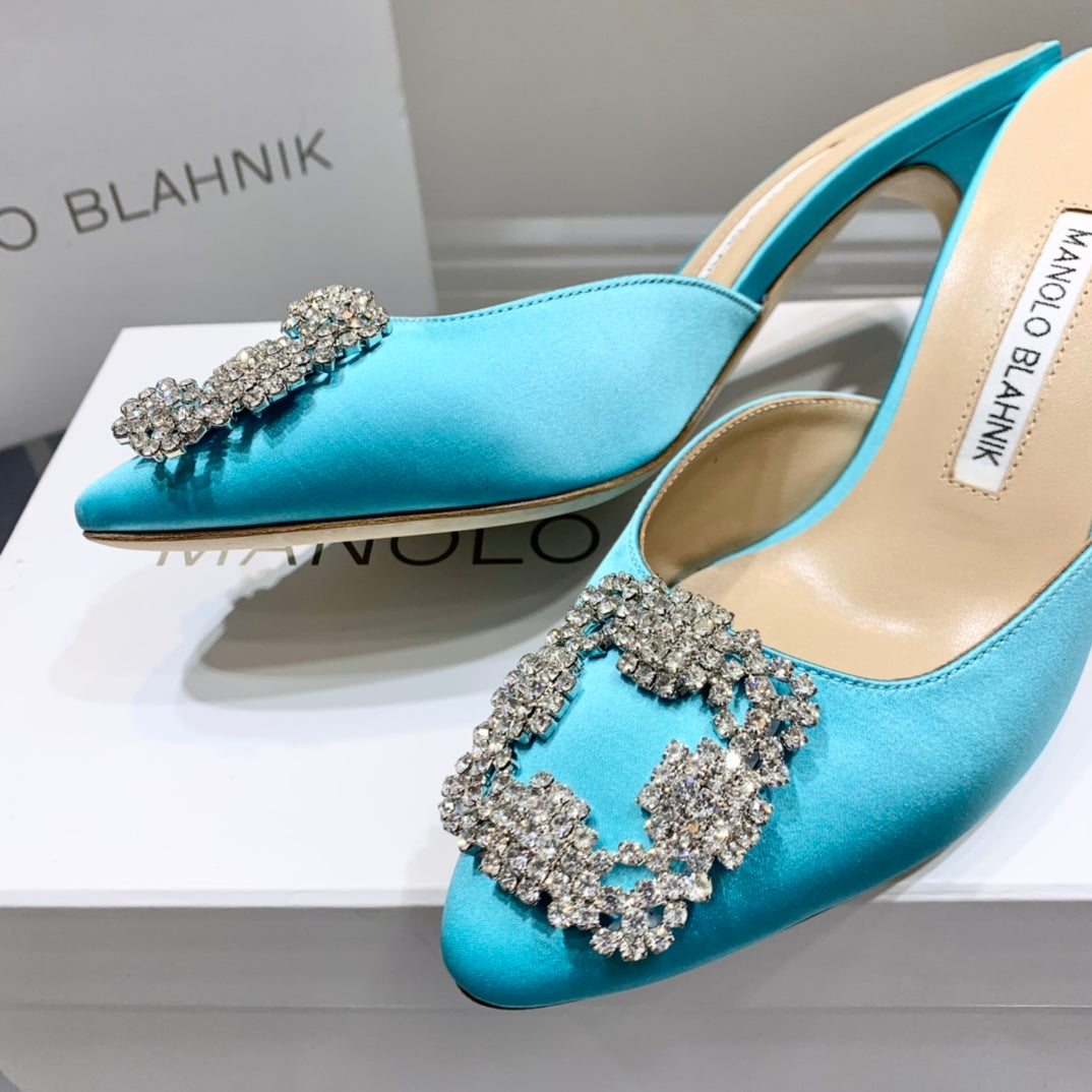 Manolo Diamond Buckle Pumps Baby Blue Silk 327501