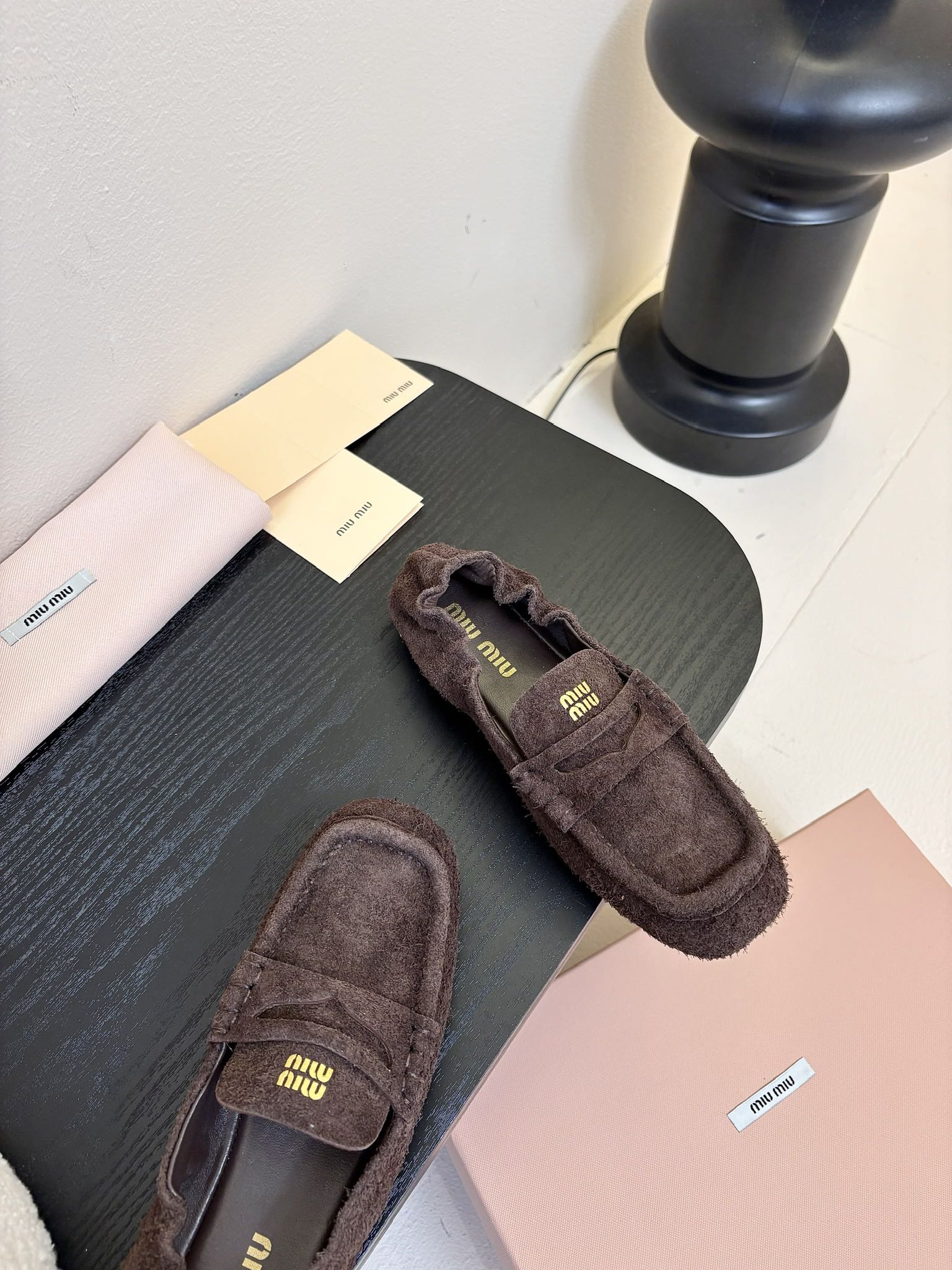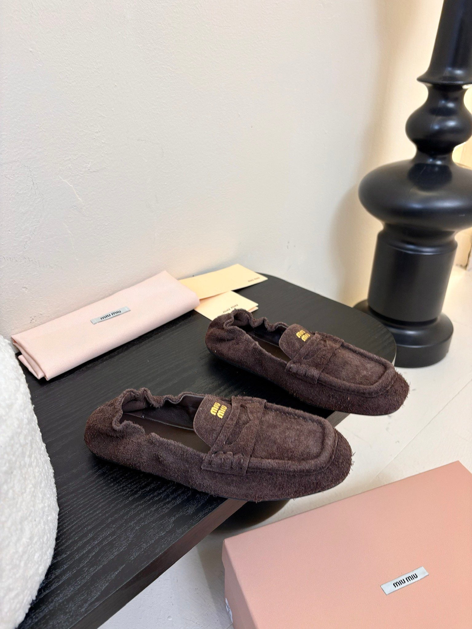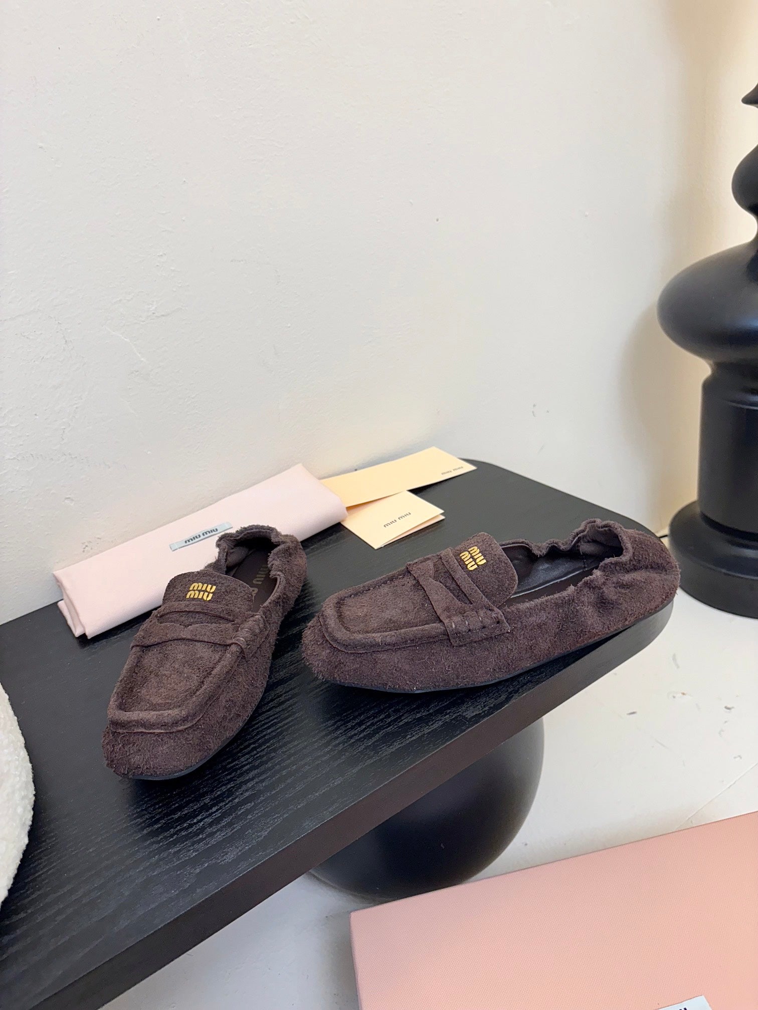 Miu 25C Ruches nappa Loafers Brown Suede 235808