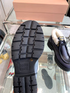 Miu Ankle Boots Charcoal Blue Open-Hemmed Cowhide