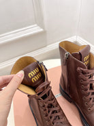 Miu Laced Booties Brown Chocolate Calfskin