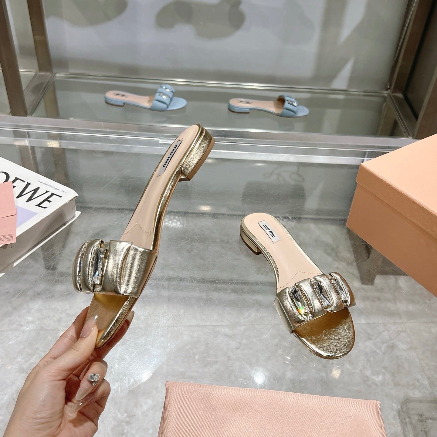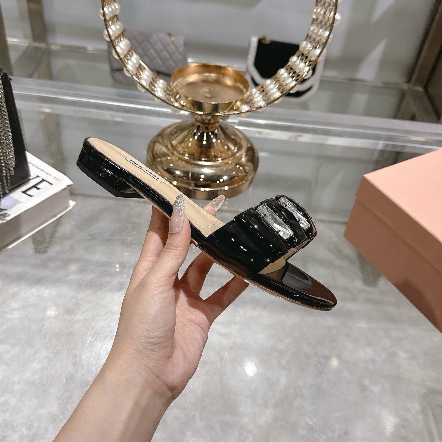 Miu 25C Flat Mule Cream Patent Leather 235308