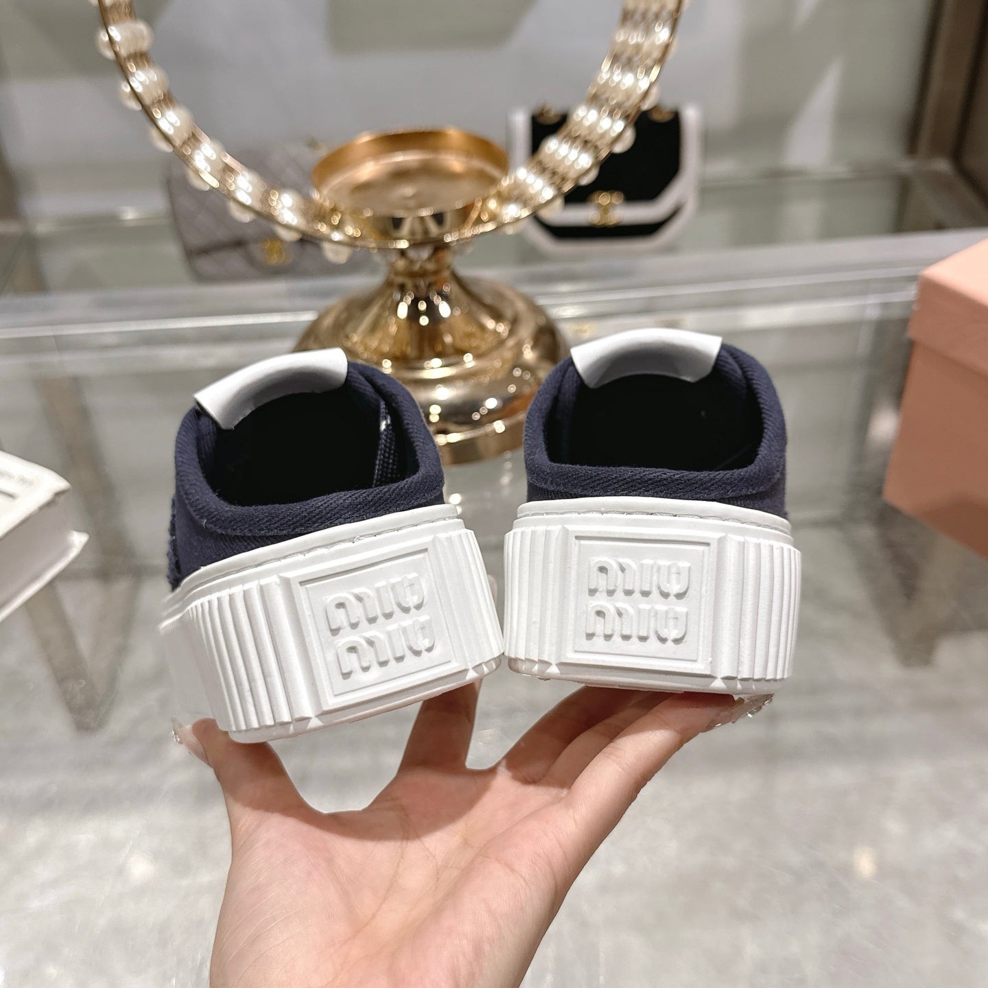 Miu Sneaker with Logo Night Blue Demin Fabric 235312