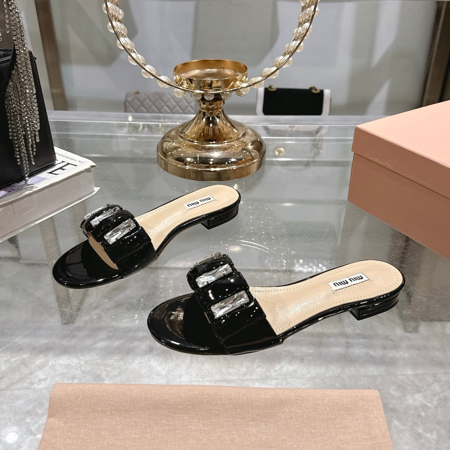 Miu 25C Flat Mule Gingerbread Brown Patent Leather 235305