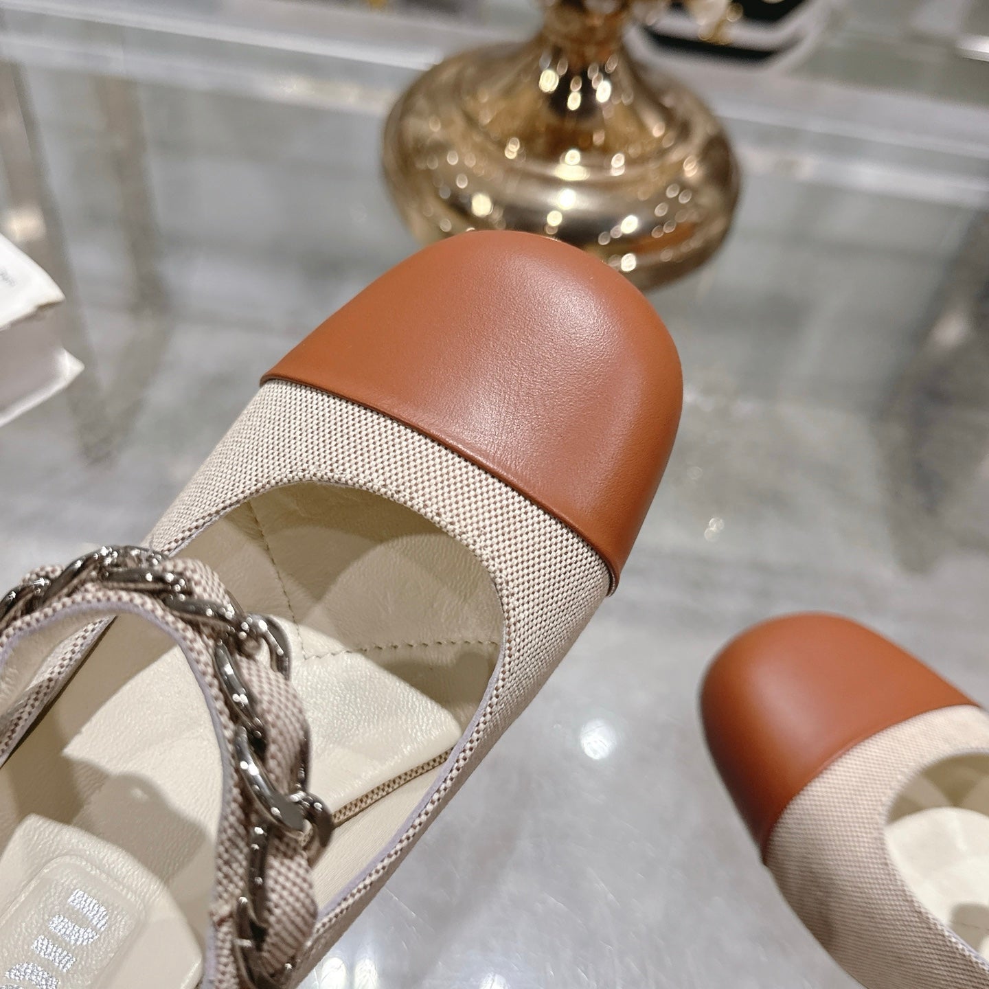 Miu 25C Mary Jane Flat Beige Cream Mix Brown Fabric 235369