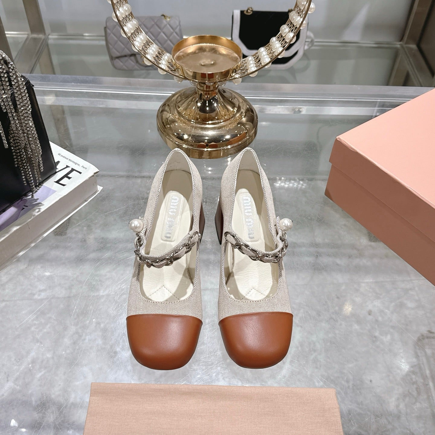 Miu 25C Mary Jane 45MM Beige Cream Mix Brown Fabric 235365