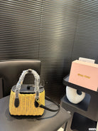 BASKET BAG 18 IN BROWN BEIGE WICKER AND BLACK CALFSKIN TRIM