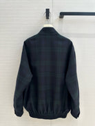 Miu Miu Plaid Drop Shoulder Jacket Green Blue Wool