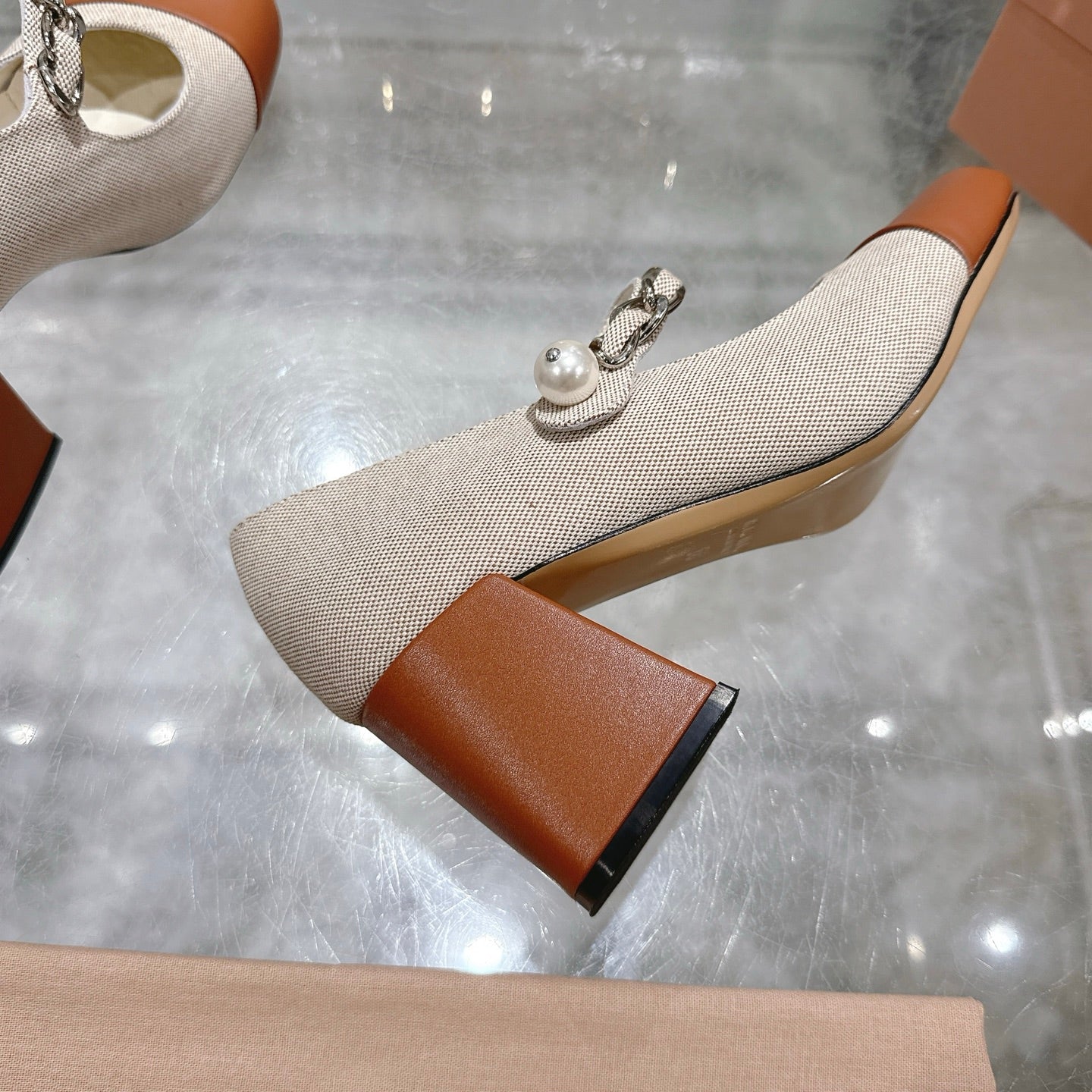Miu 25C Mary Jane 75MM Beige Cream Mix Brown Fabric 235367