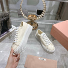 Miu Sneaker with Logo Ivory Demin Fabric 235310
