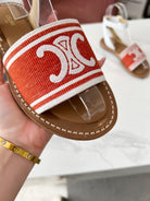 Celine 25C Lympia Sandal Red mix White Canvas with Calfskin 238173