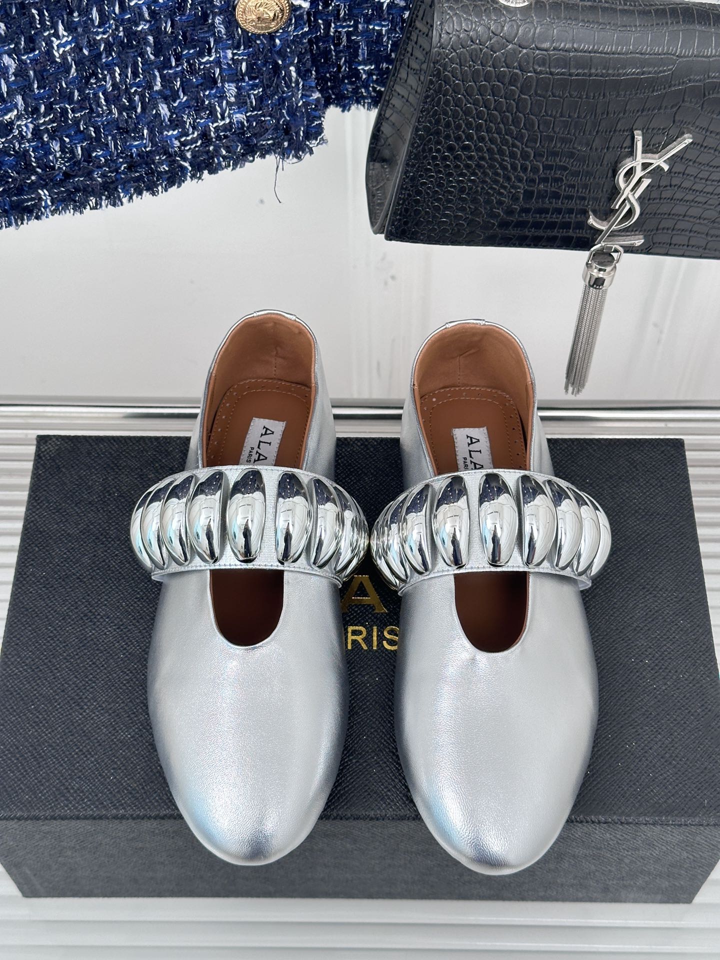 Alaia 25 Mary Jane Jewel Ballet Flats Silver Calfskin 293243