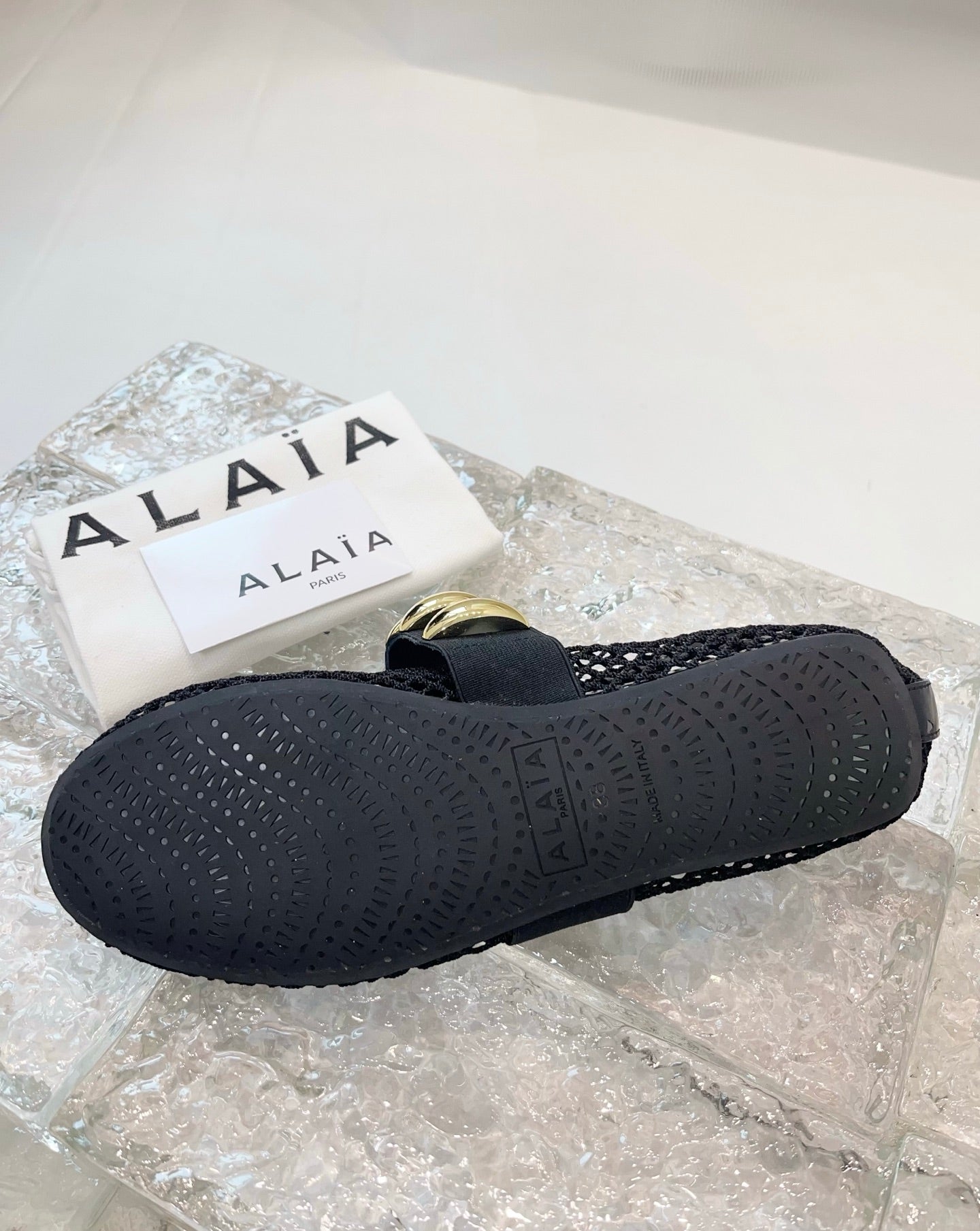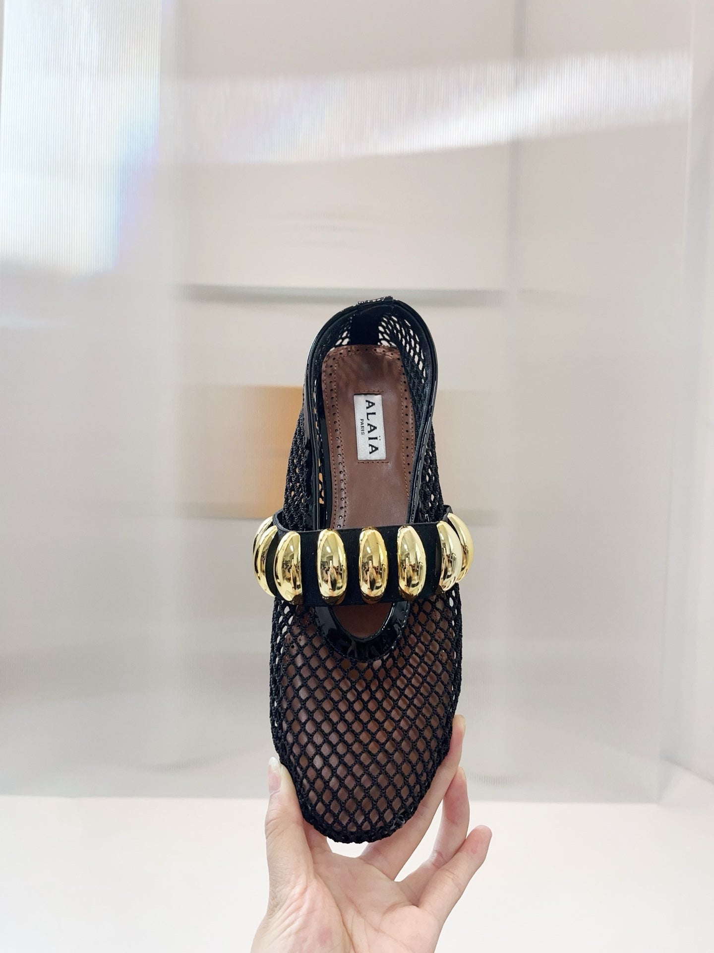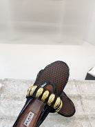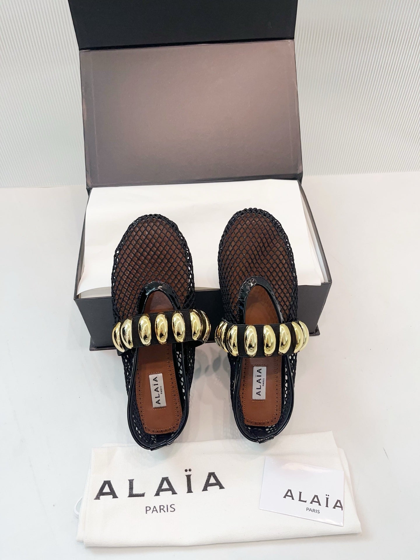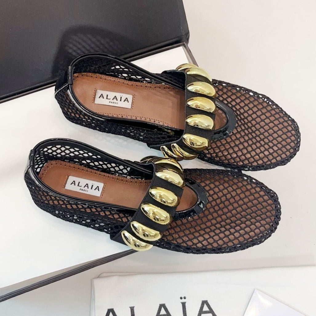 Alaia 25 Mary Jane Mesh Ballet Flats Black Gold Calfskin