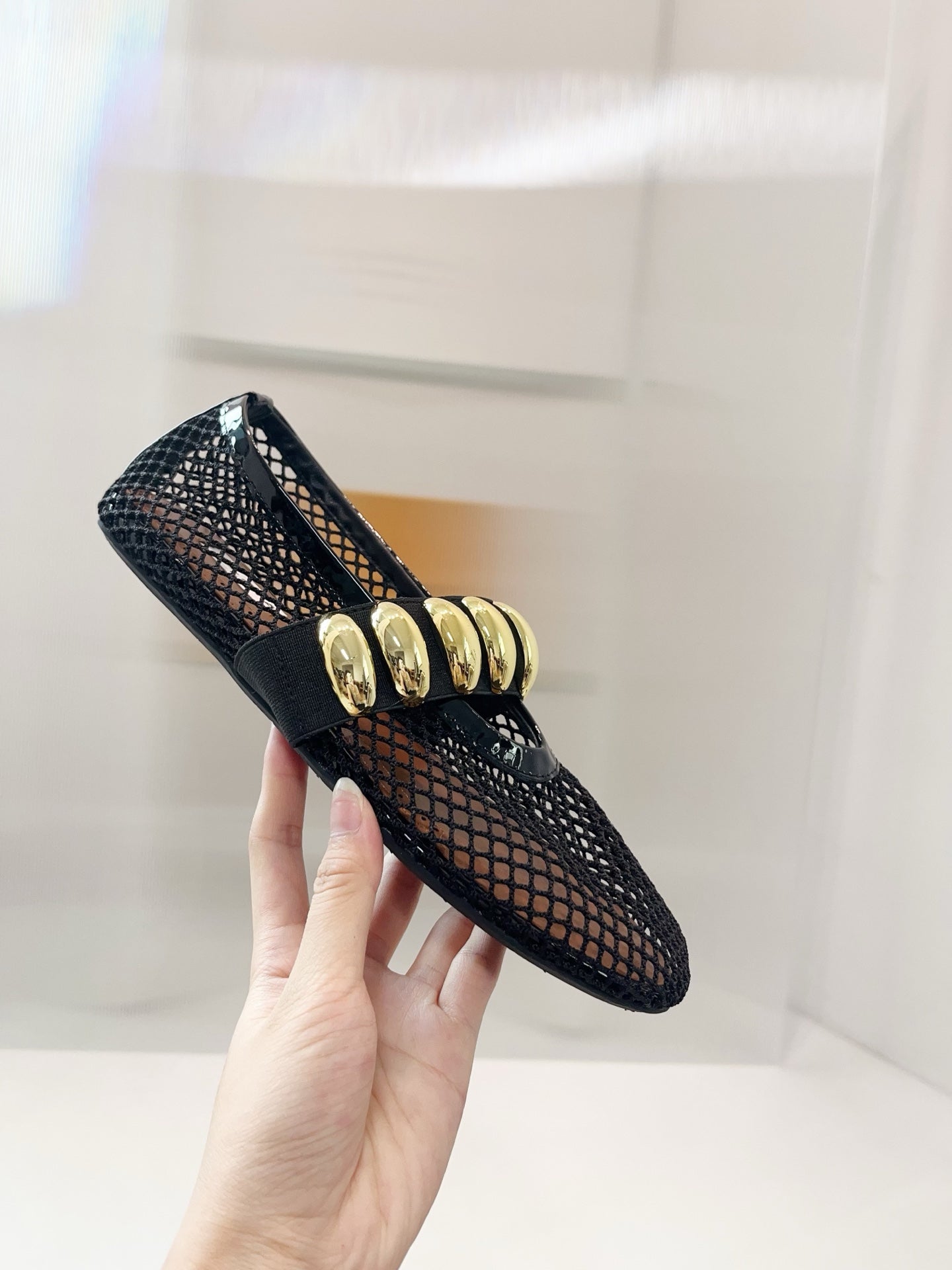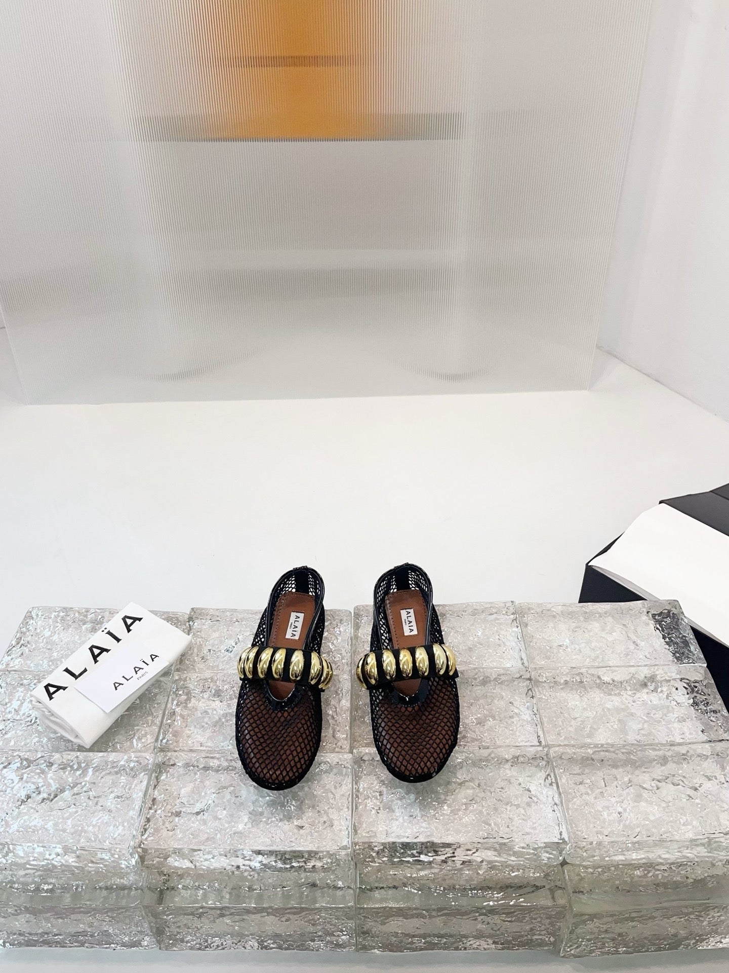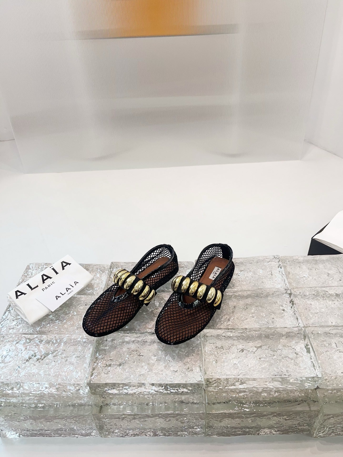 Alaia 25 Mary Jane Mesh Ballet Flats Black Gold Calfskin