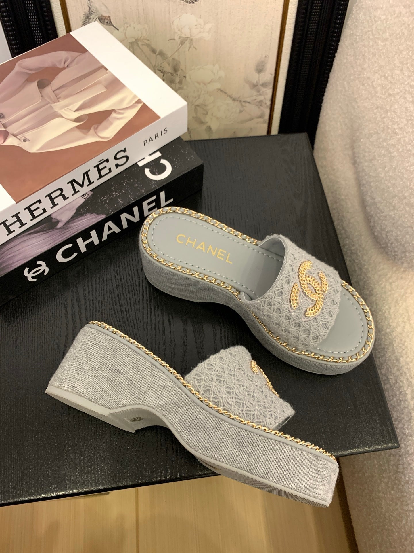 CC 25 Platform Slippers Blue Lambskin 310384