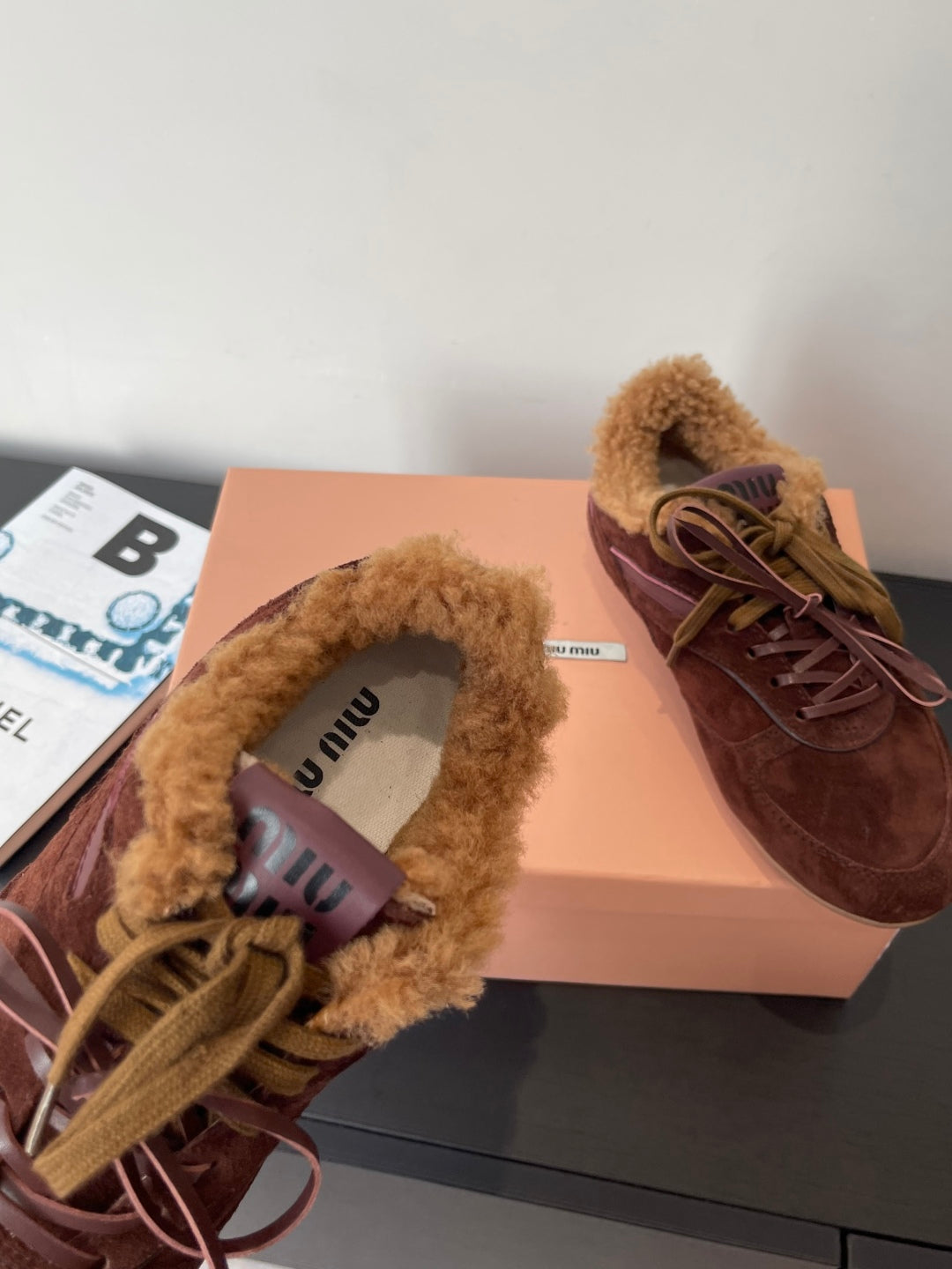 MiuMiu 25 sneaker dark brown suede wool 521960