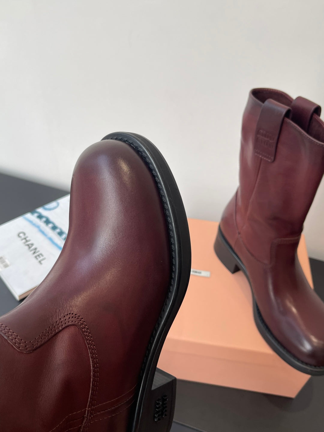 MiuMiu 26 heeled boots burgundy cowhide 521958
