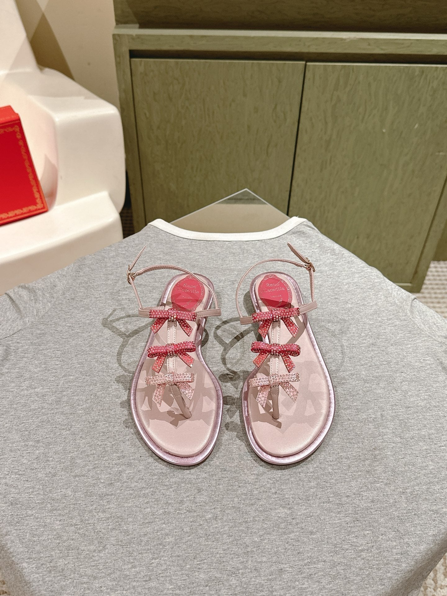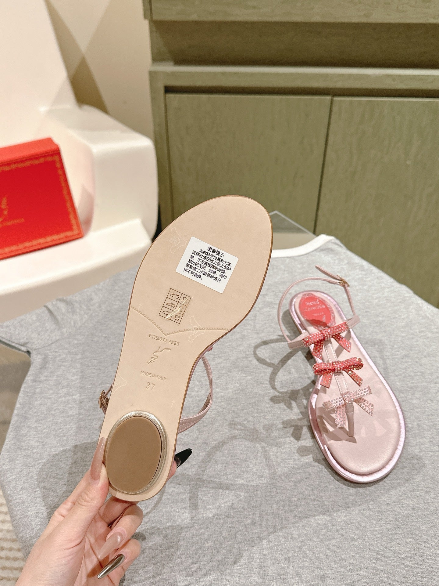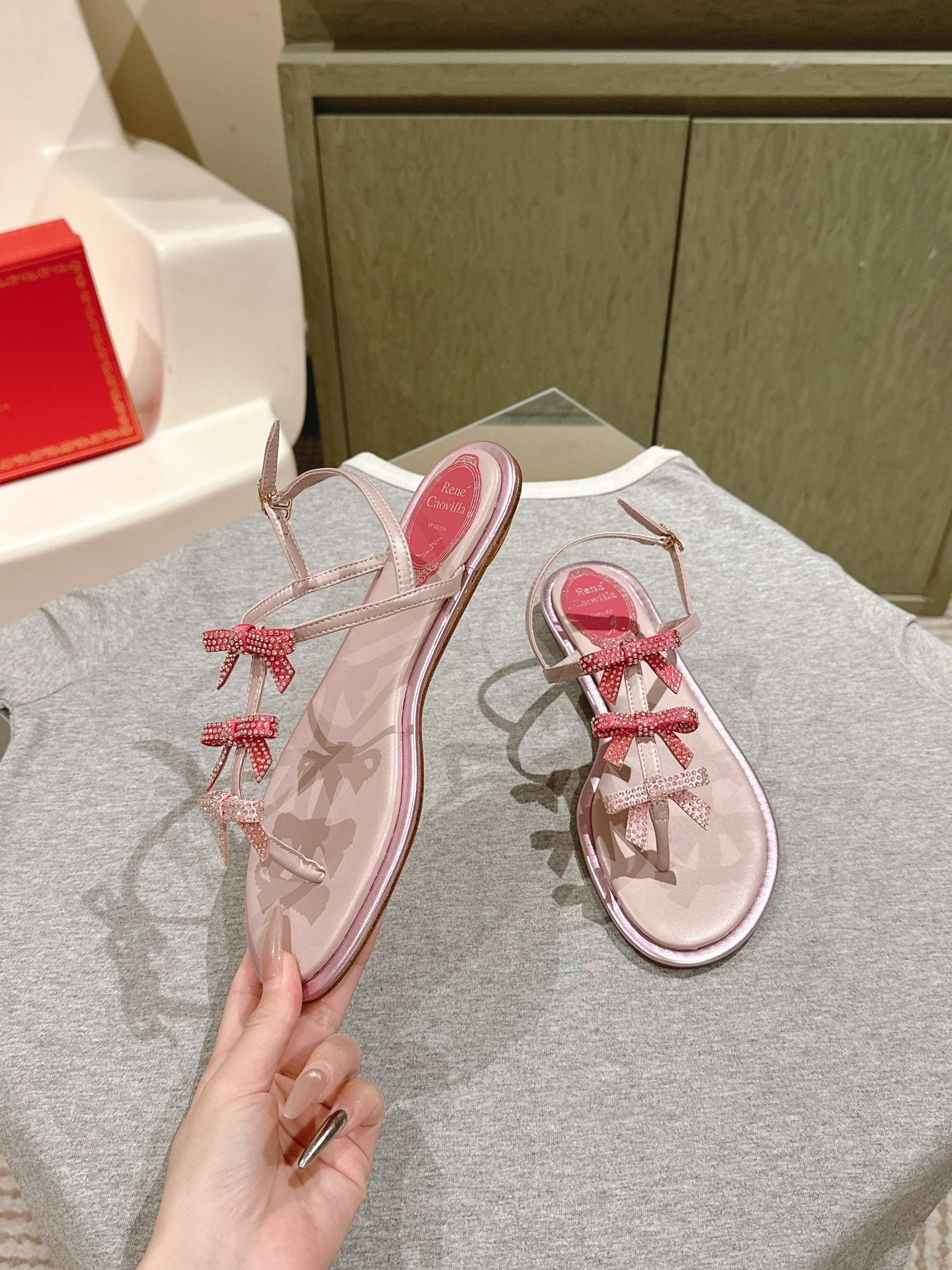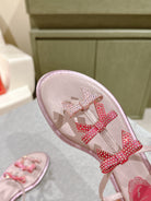 RC 25 Thong Bow Attached Flat Sole Pink Silk Rhinestones 268065