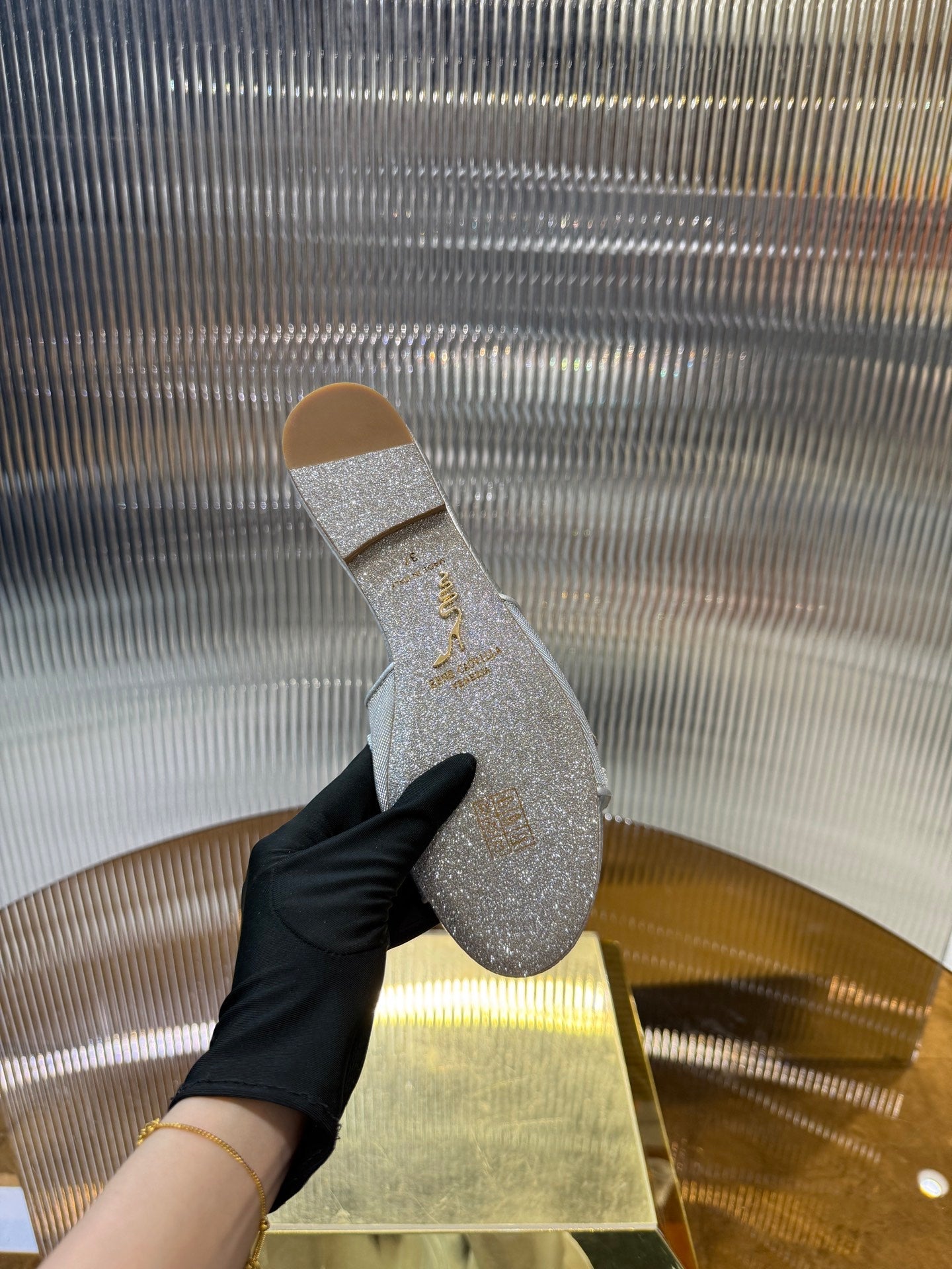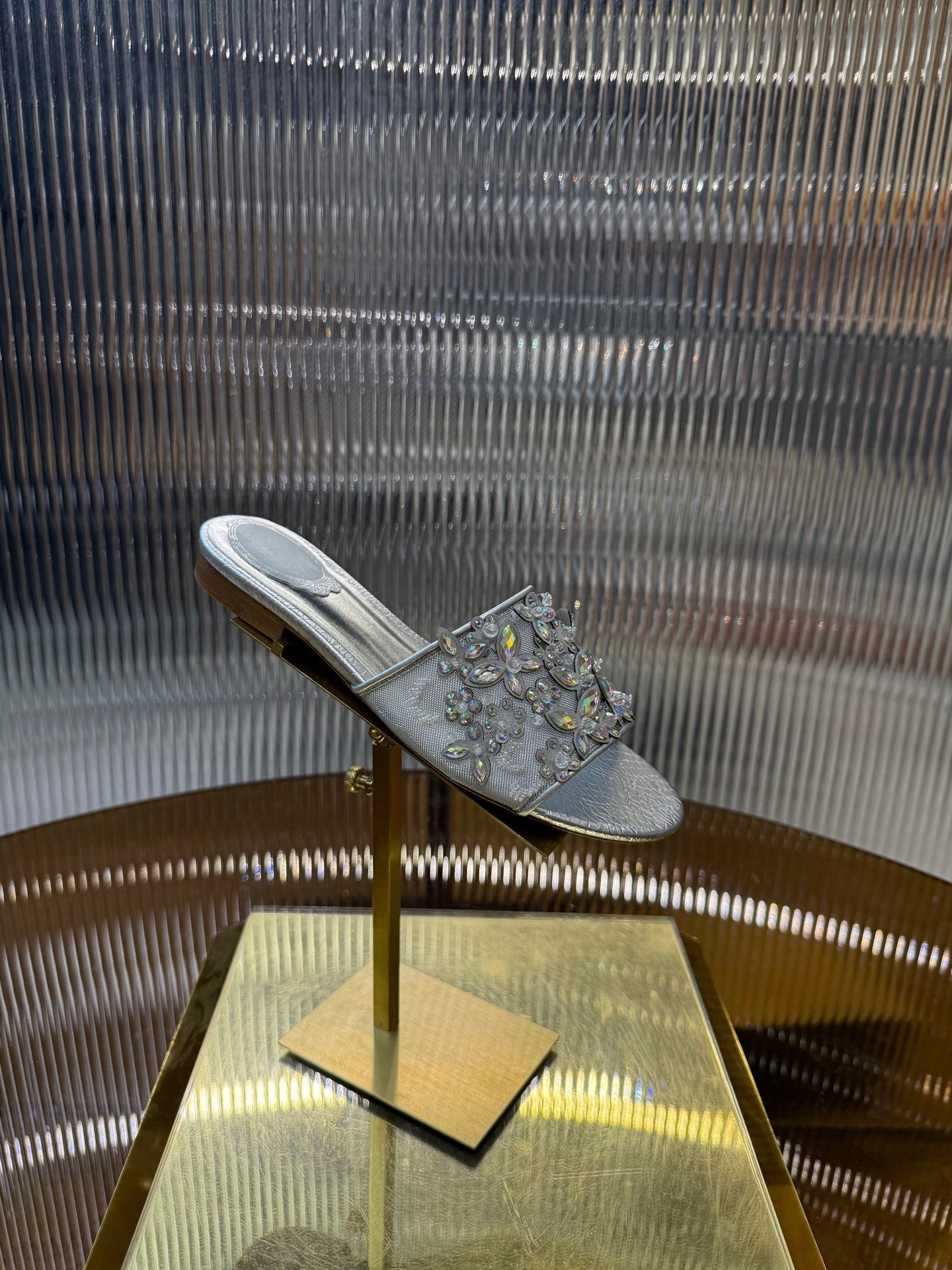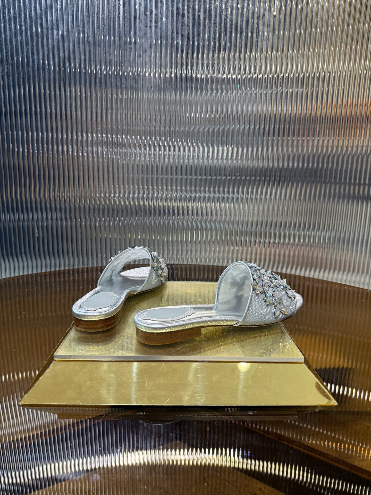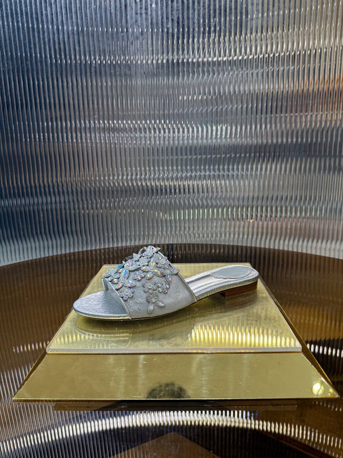 RC 25C Butterfly Flower Flat Sandals Slippers Sliver Sheepskin Rhinestone 275770