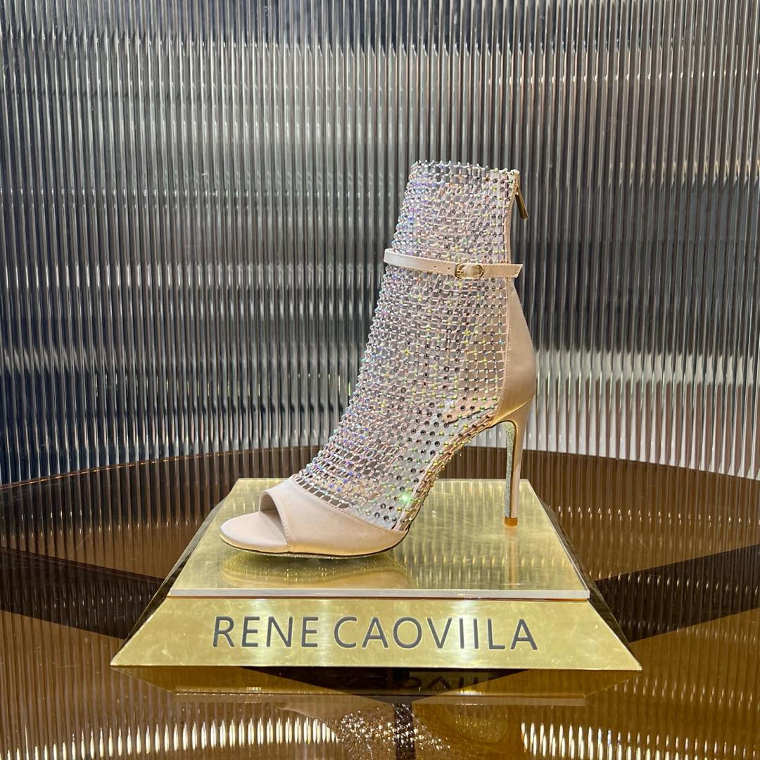 RC 25C High Heel Short Boots Mid-Tube Open-Toe Sandals Pink Sheepskin 174965
