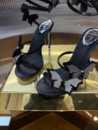 RC 25C Stiletto Sandals Black Silk Rhinestone 275776