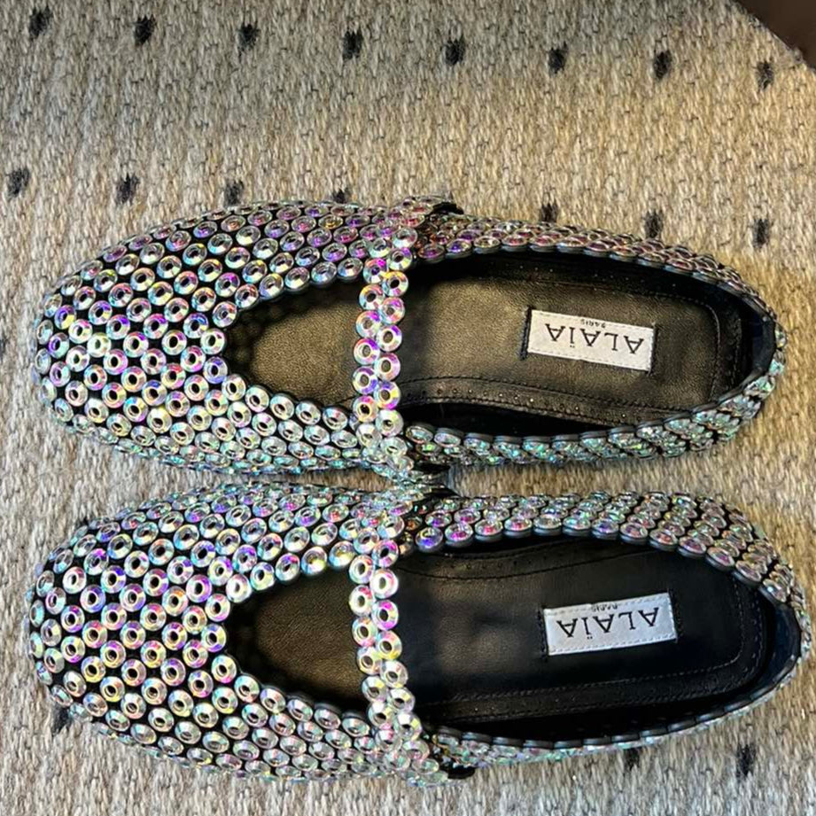Alaia 25 Vienne With Strass Ballet Flats Black Lambskin 303722