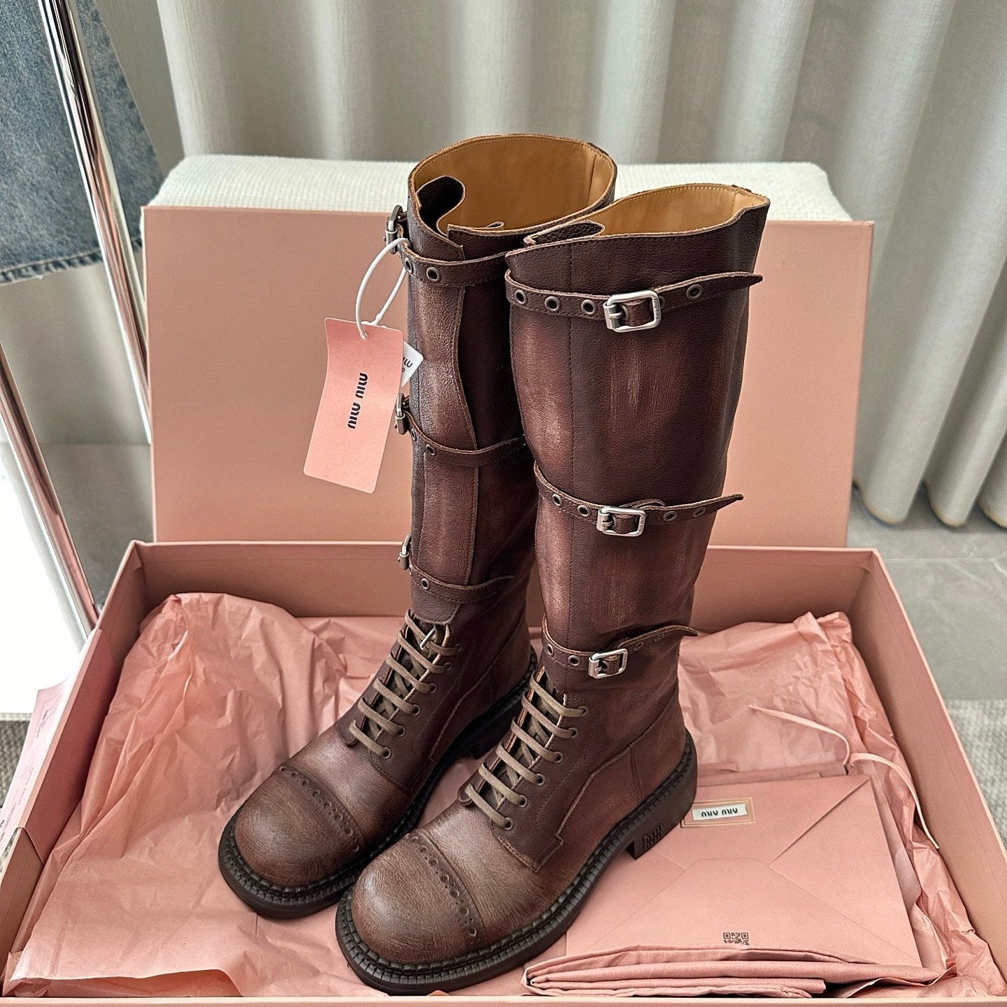MiuMiu 25 motorcycle boots brown cowhide 521967