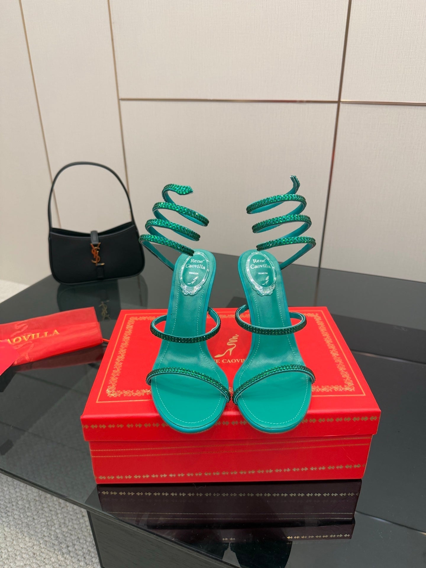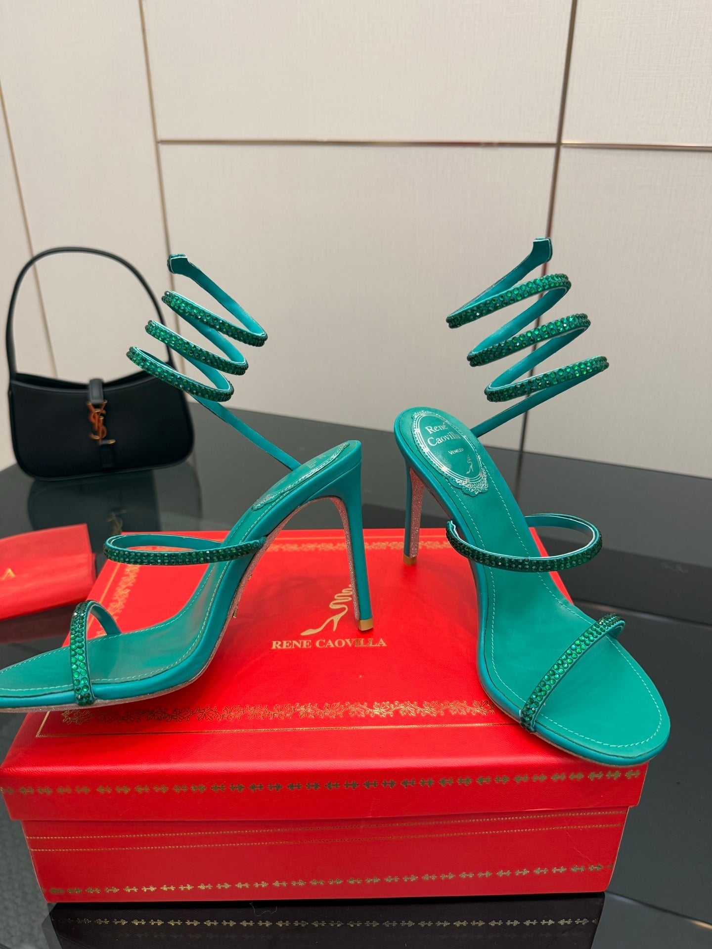RC Sandals 9.5cm Dark Green Silk Creole Crystal Diamond 302608