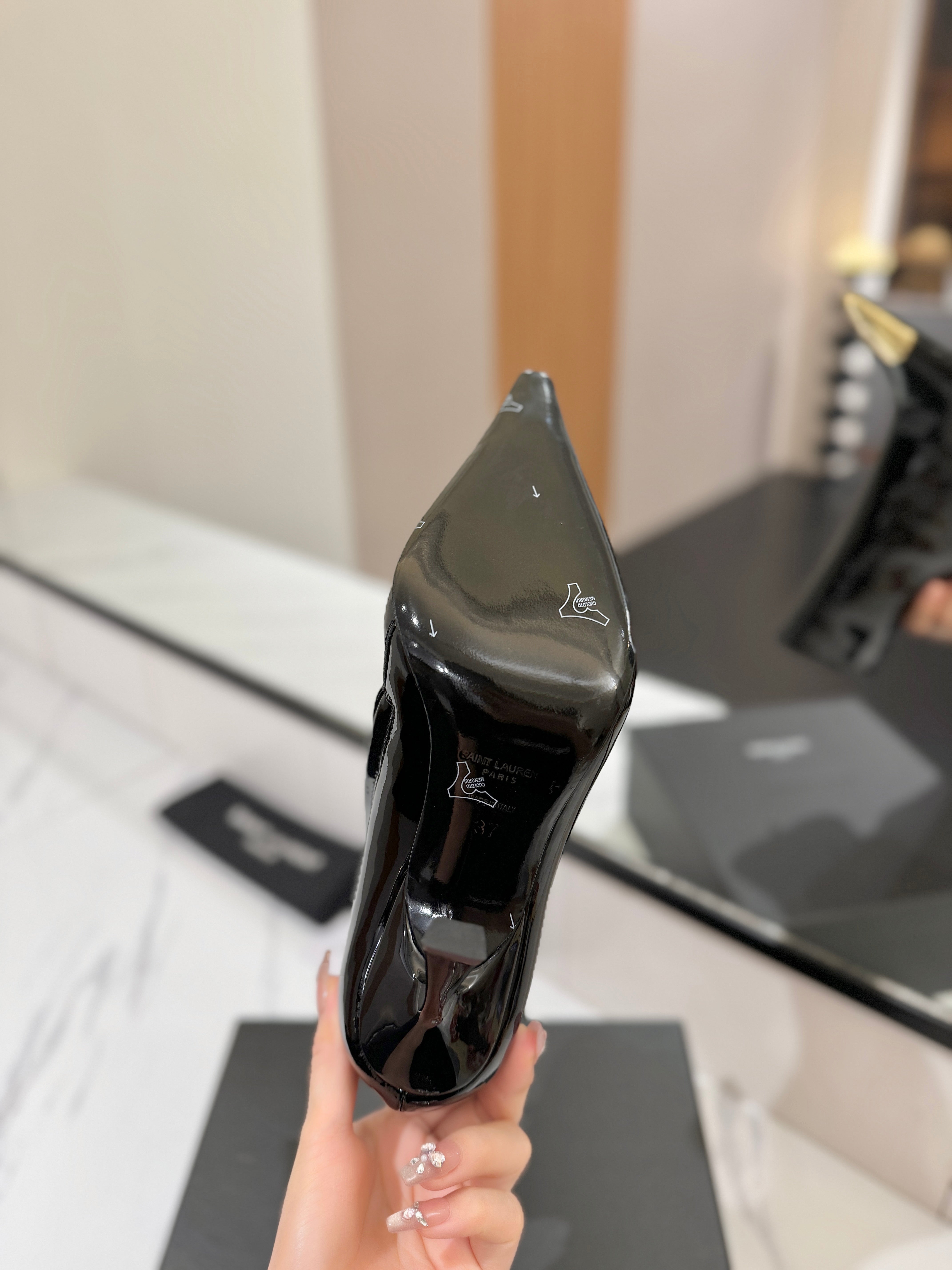YSL 25 Metal Toe Short Boot Black Gold Patent Leather 520788