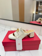 VT 2025 Signature Heeled Mule Ivory Calf Leather 295078