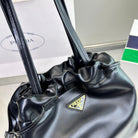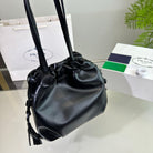DRAWSTRING BUCKET BAG 25 IN BLACK SOFT LAMBSKIN