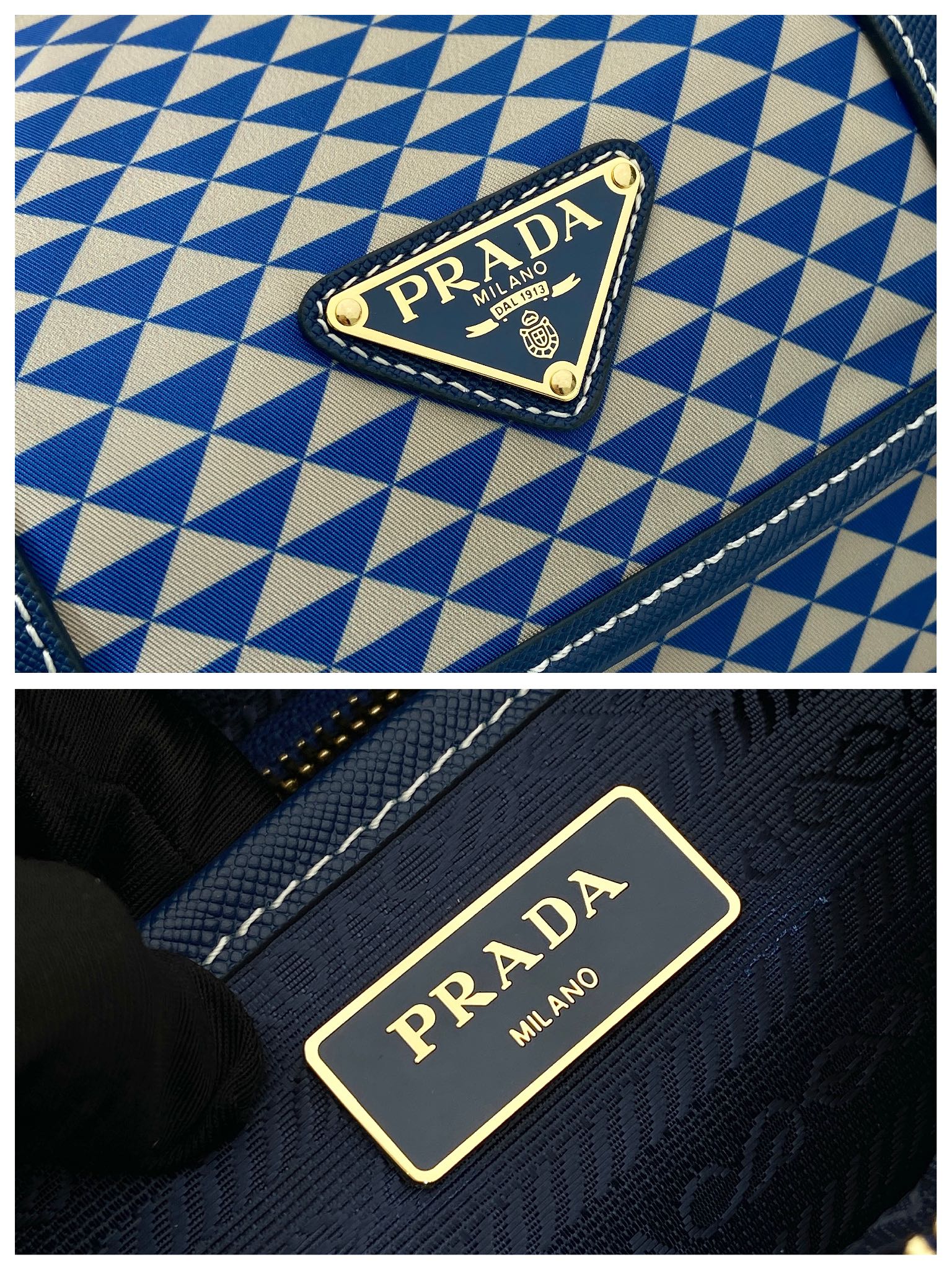 MESSENGER BAG 25 IN BLUE MIX WHITE TRIANGLE PATTERN EMBROIDERED FABRIC
