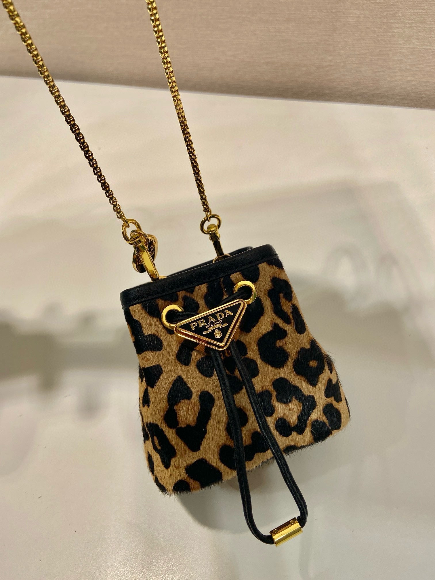 Pra Mini Drawstring Pouch Black Brown Calfskin