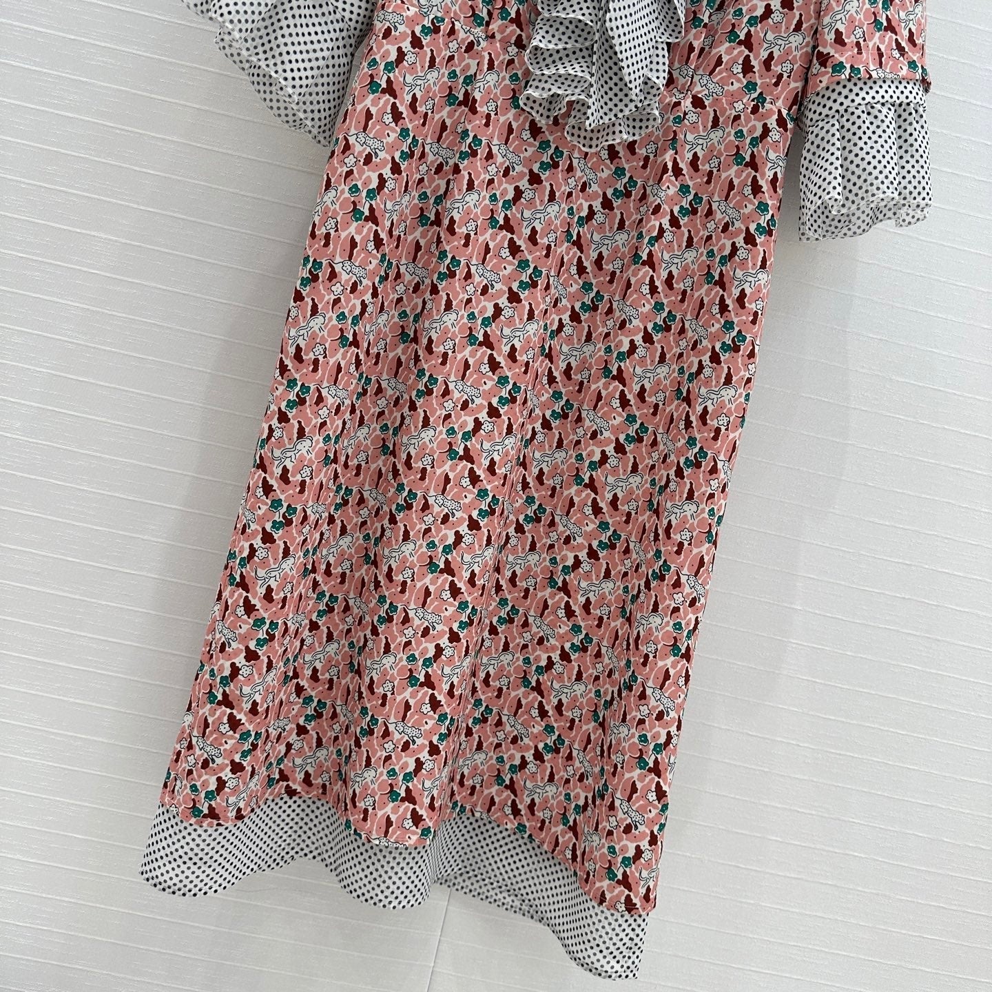 Prada Lace Half-sleeved Dress Pink mix colors Polyester