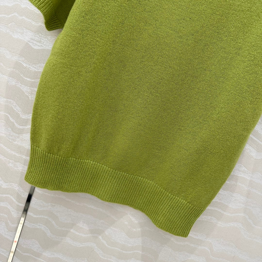Prada Short Sleeves T-shirt Green Wool Cashmere