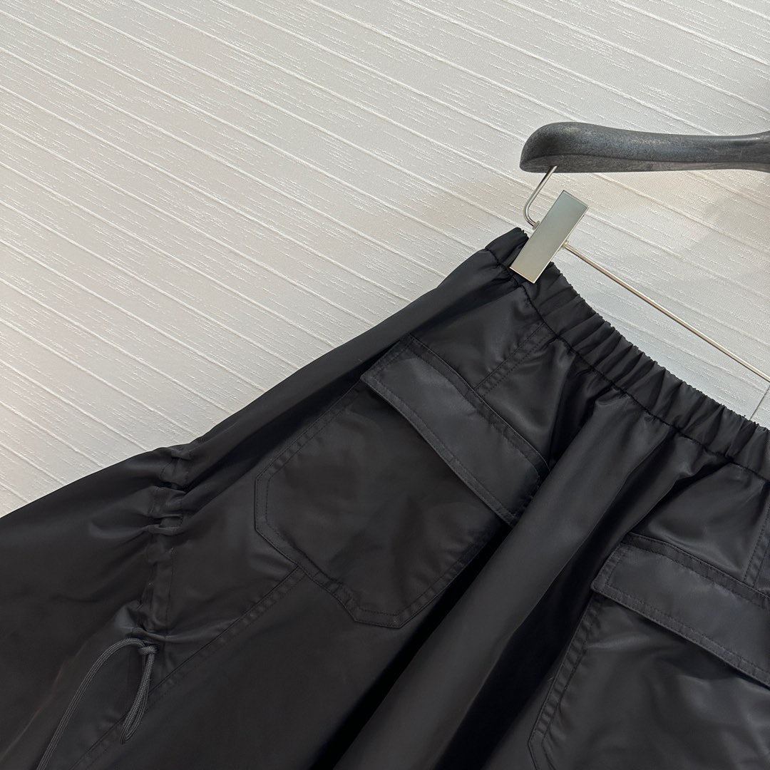 Prada 25 Drawstring Elastic Waist Umbrella Skirt Beige Cotton 215066