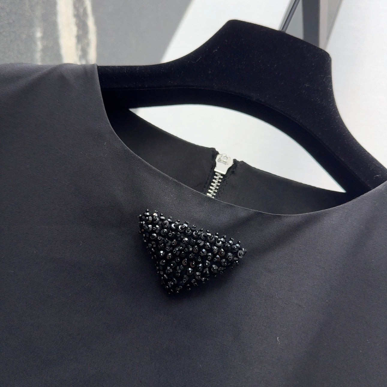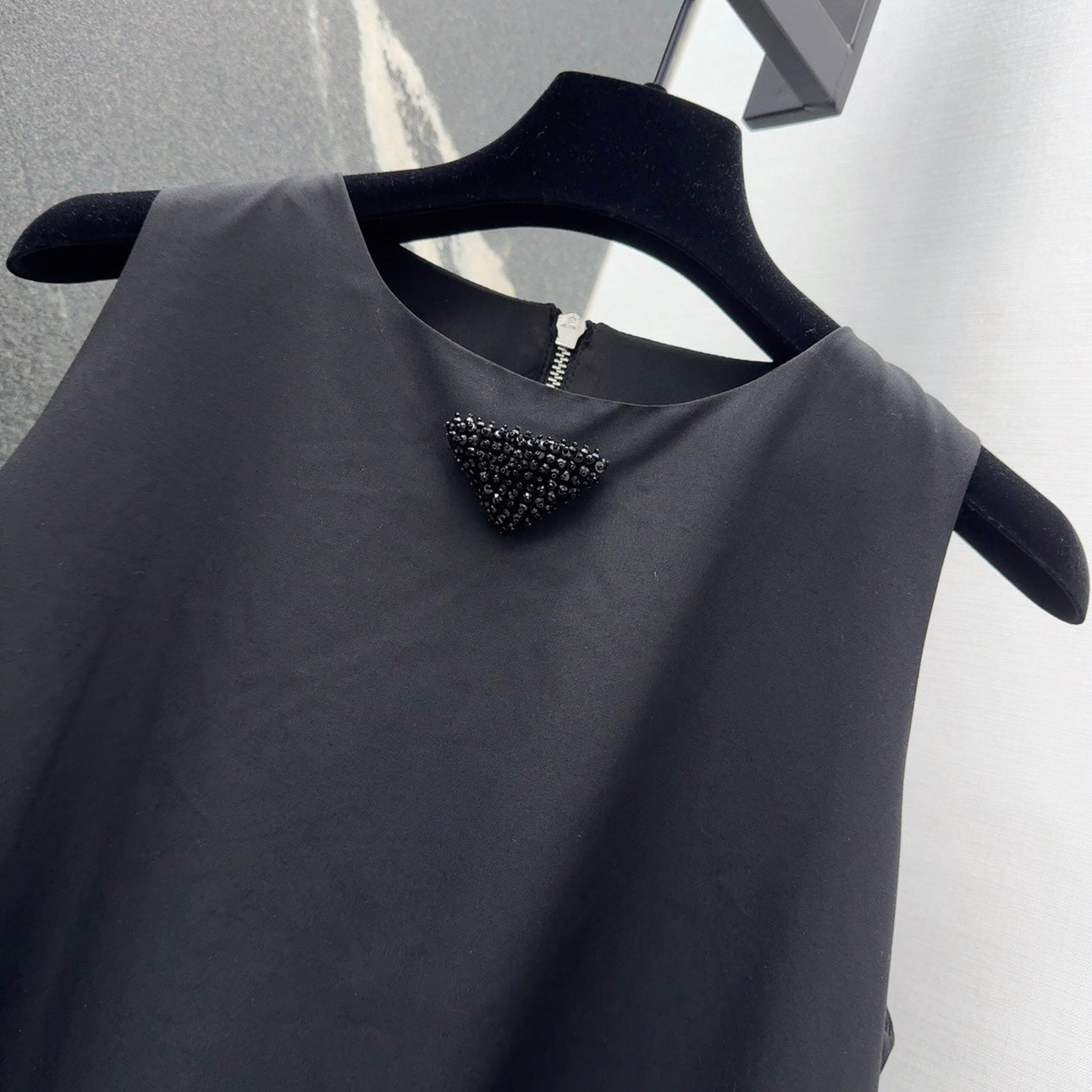 Prada 2025 Sleeveless Dress A-line Babydoll Black Polyester