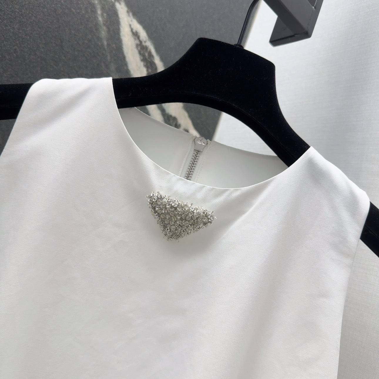Prada 2025 Sleeveless Dress A-line Babydoll White Polyester