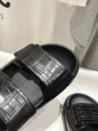 PRA CROCODILE LEATHER MOTIF SANDALS BLACK CALFSKIN
