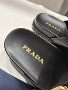 PRA CROCODILE MOTIF STRAP SLIDES SANDALS BLACK CALFSKIN