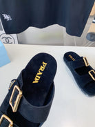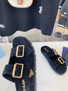 PRA STRAP SLIDES SANDALS BLACK SUEDE
