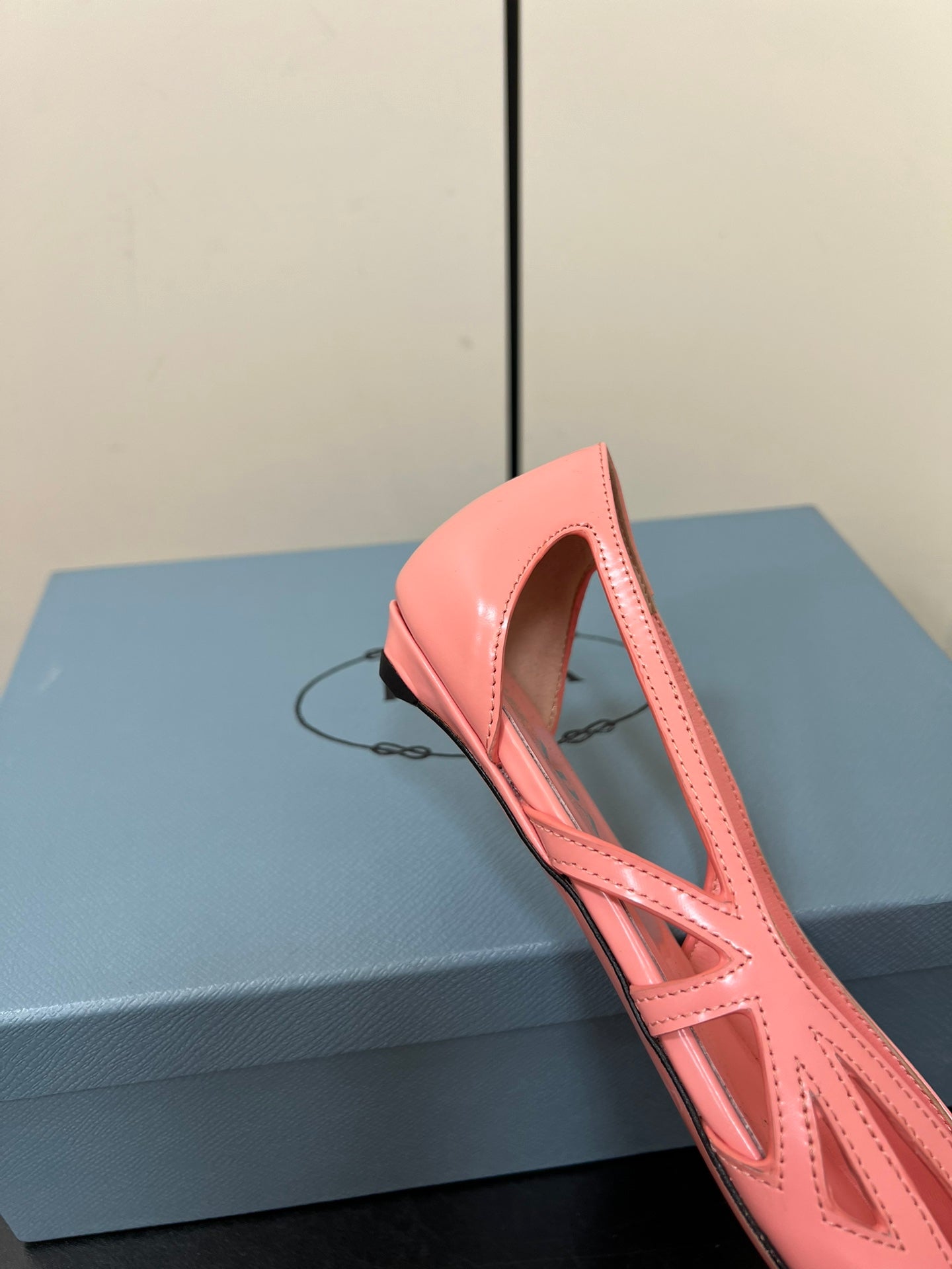BRUSHED CUT-OUT BALLERINA FLAT IN SALMON PINK CALFSKIN