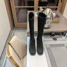 KNEE BOOTS WITH TRIANGLE LOGO IN BLACK SUEDE