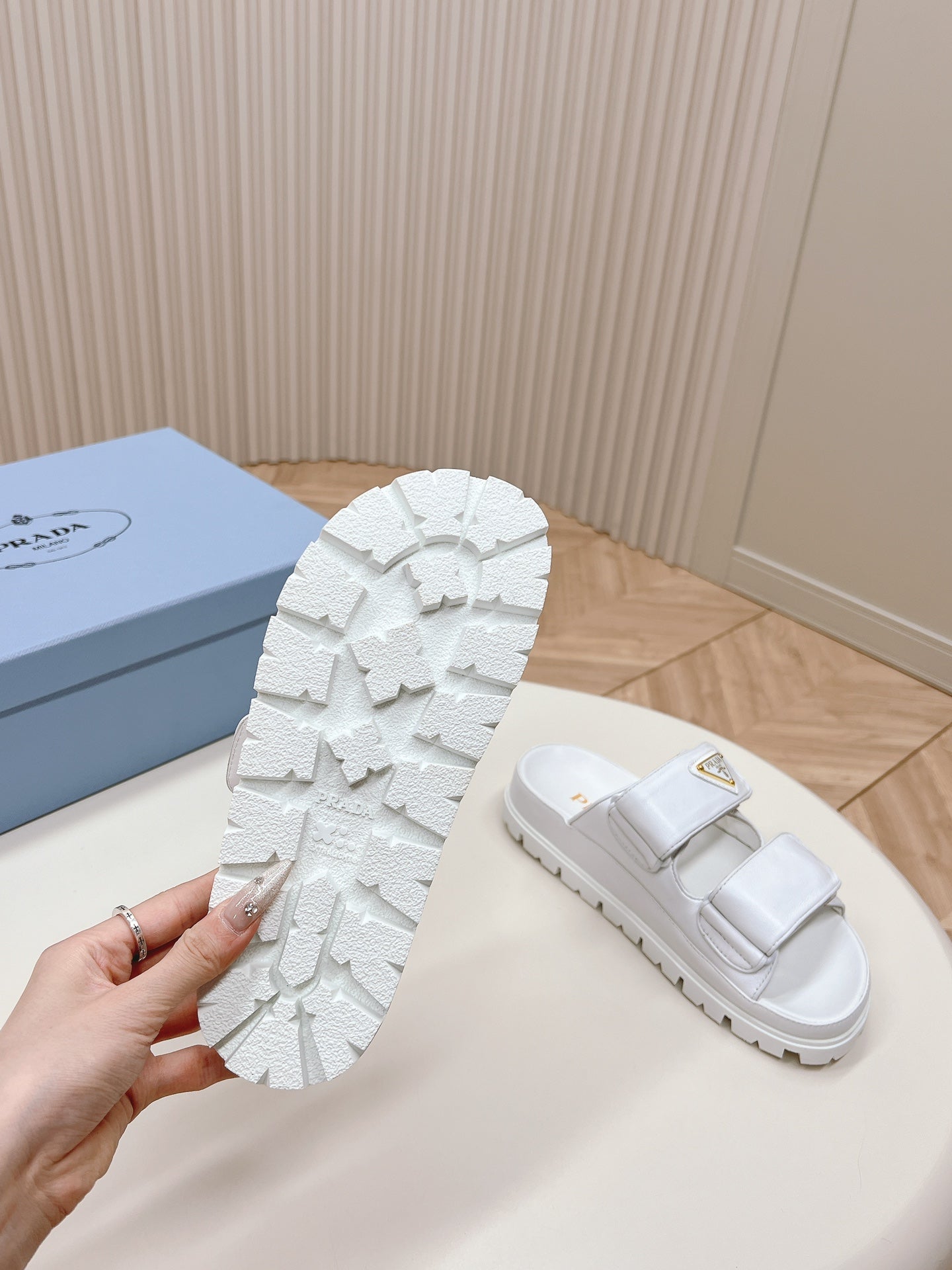 Pra Double Strap Slide 20 With Triangle Logo White Calfskin