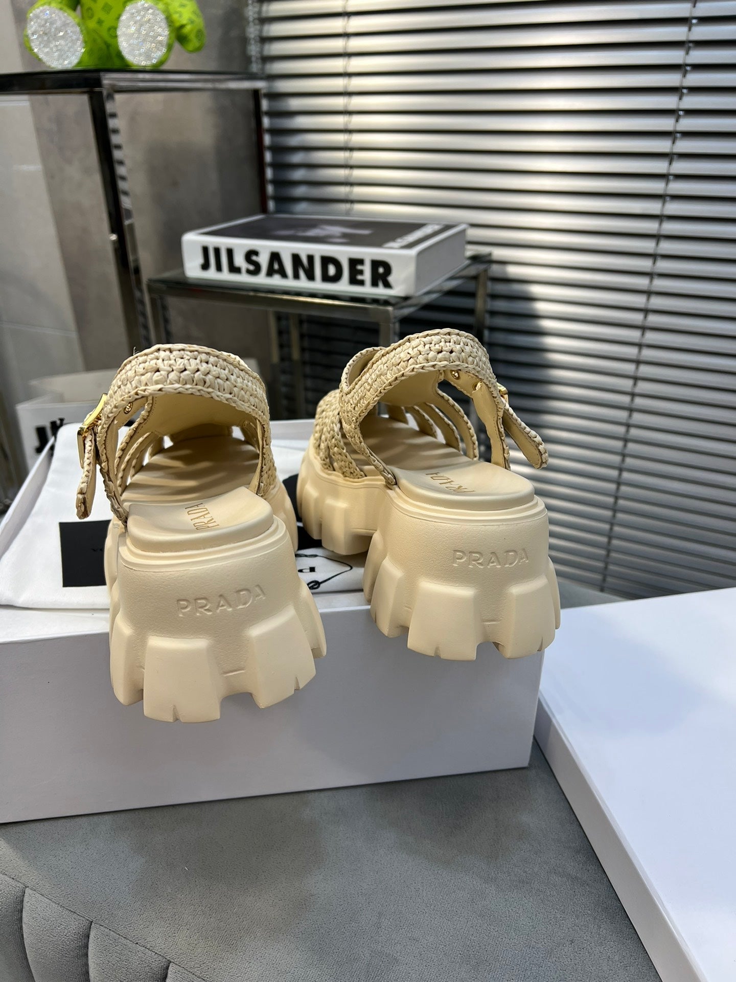 - Material: Raffia-effect yarn, Rubber Sole