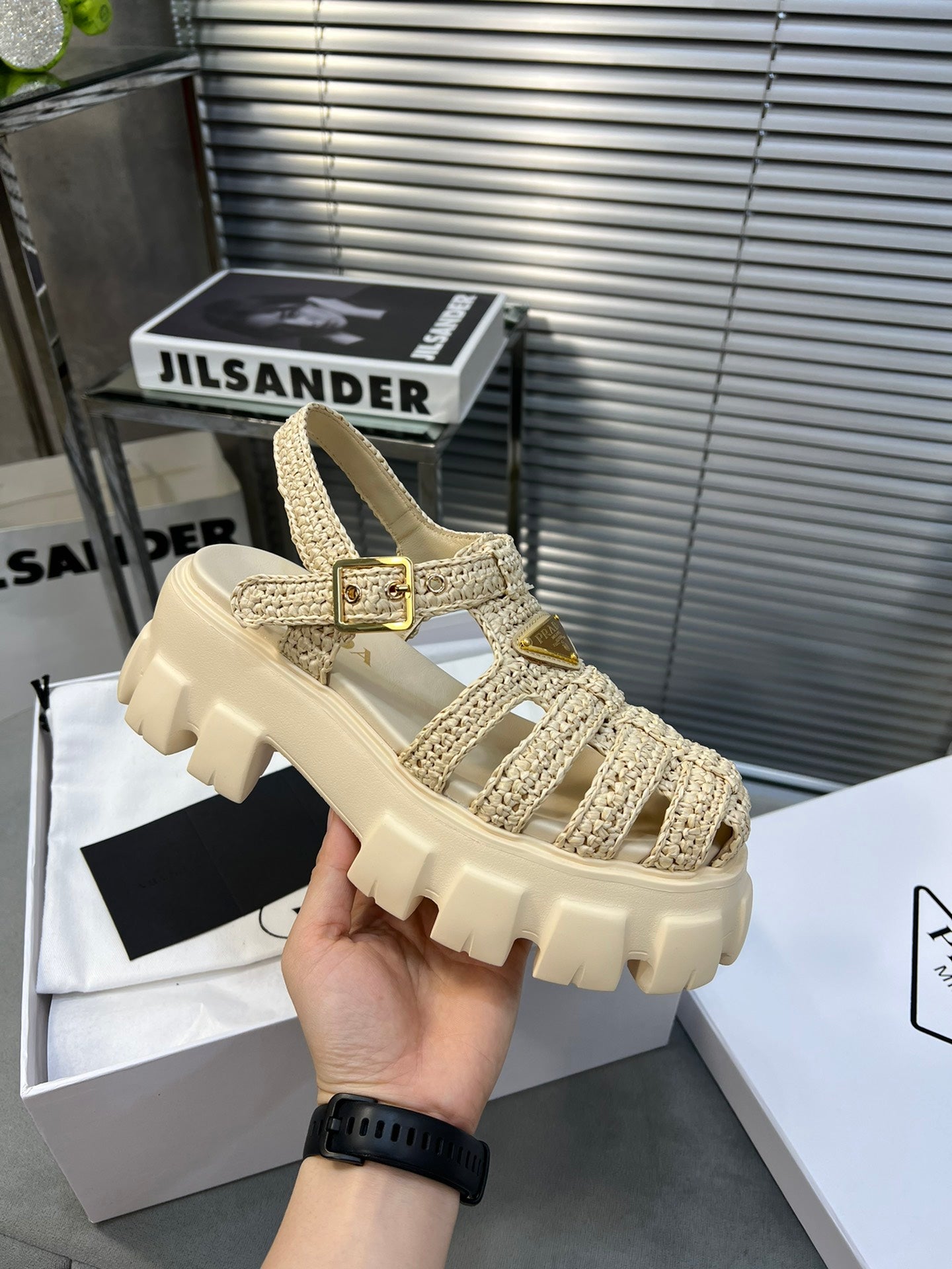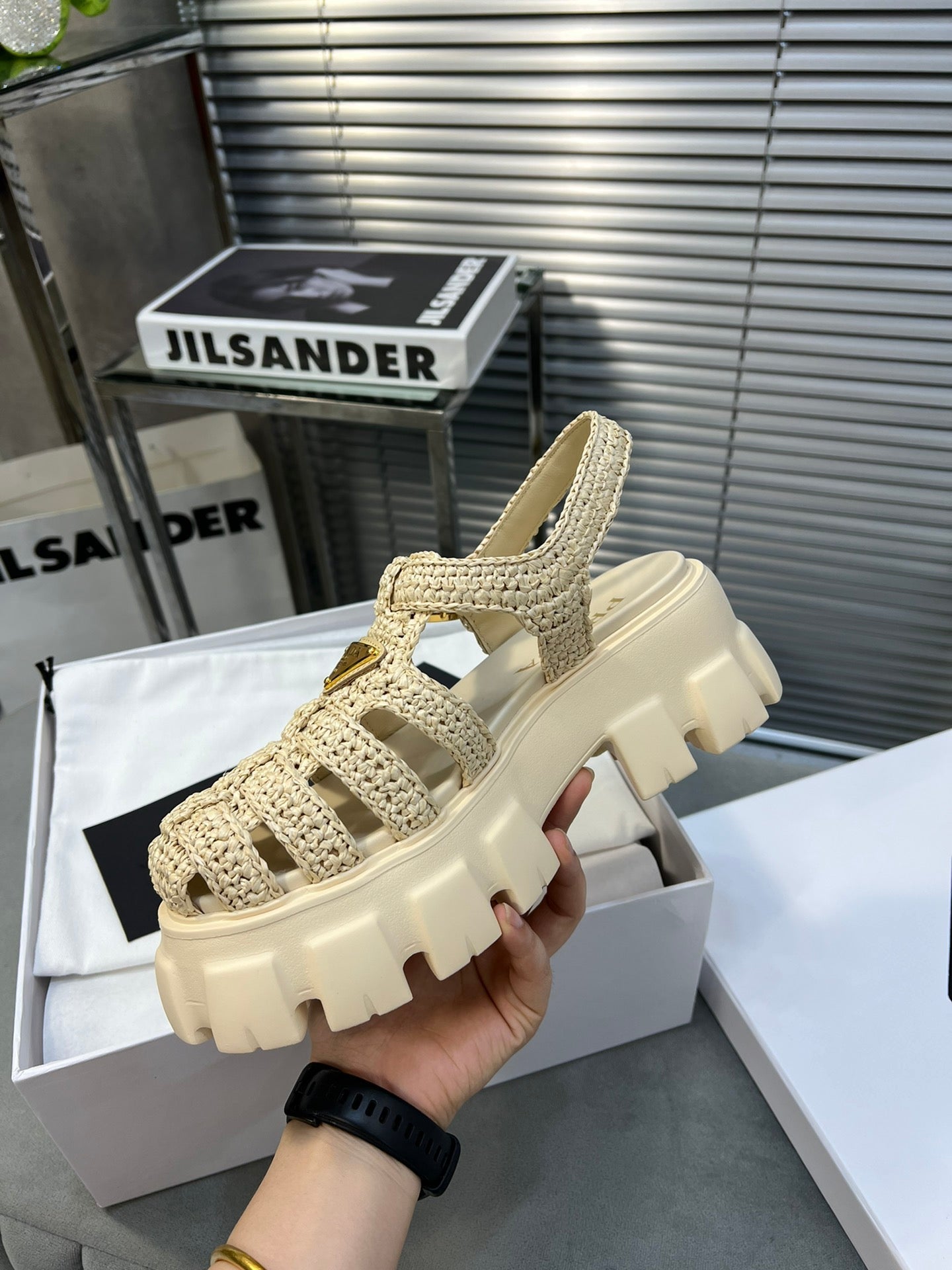 Pra Monolith Crochet Cage Sandals 55 Beige