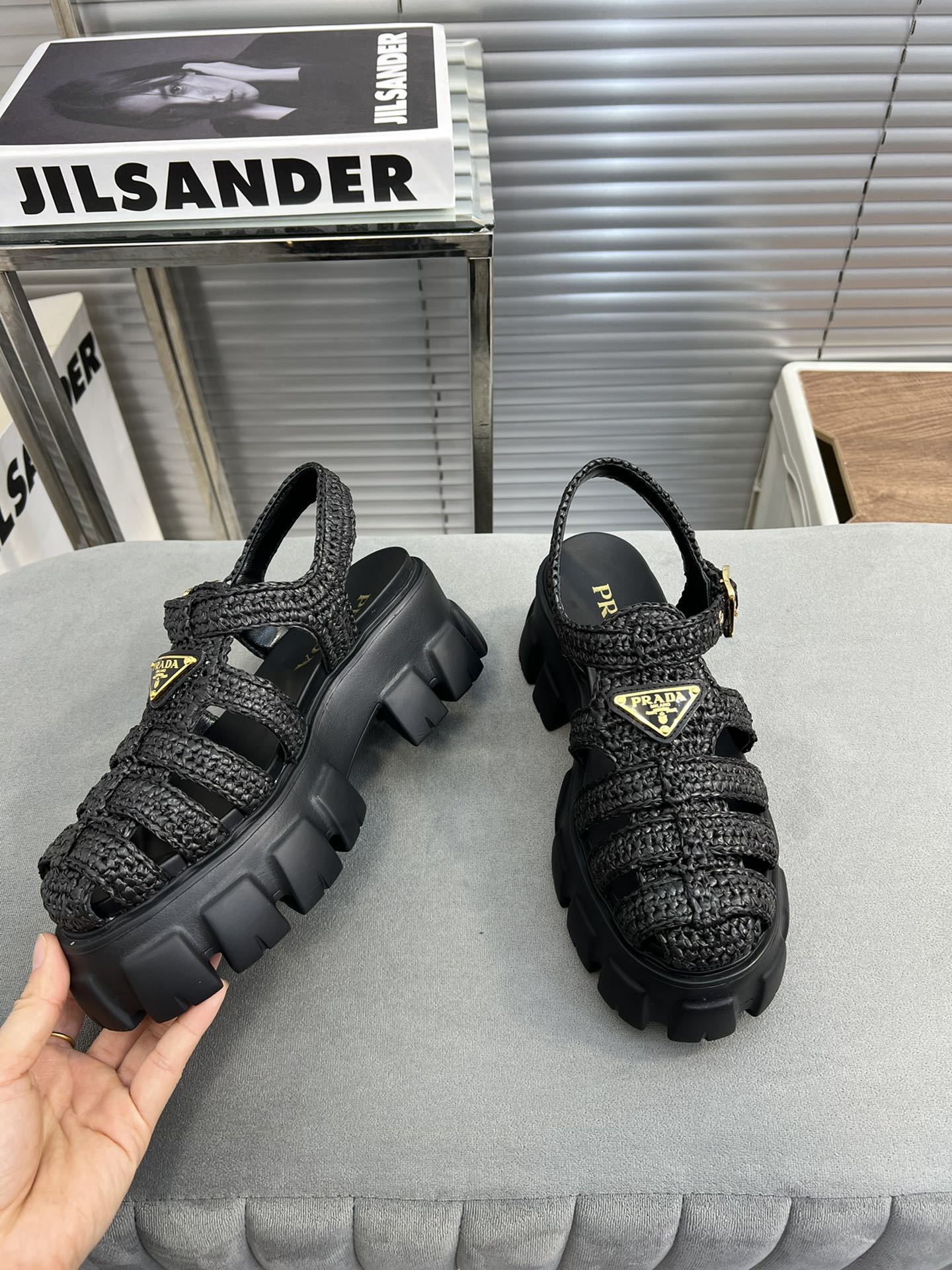 - Material: Raffia-effect yarn, Rubber Sole