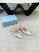 SLINGBACK PUMPS ATTACHED BOW IN WHITE GLOSSY CALFSKIN